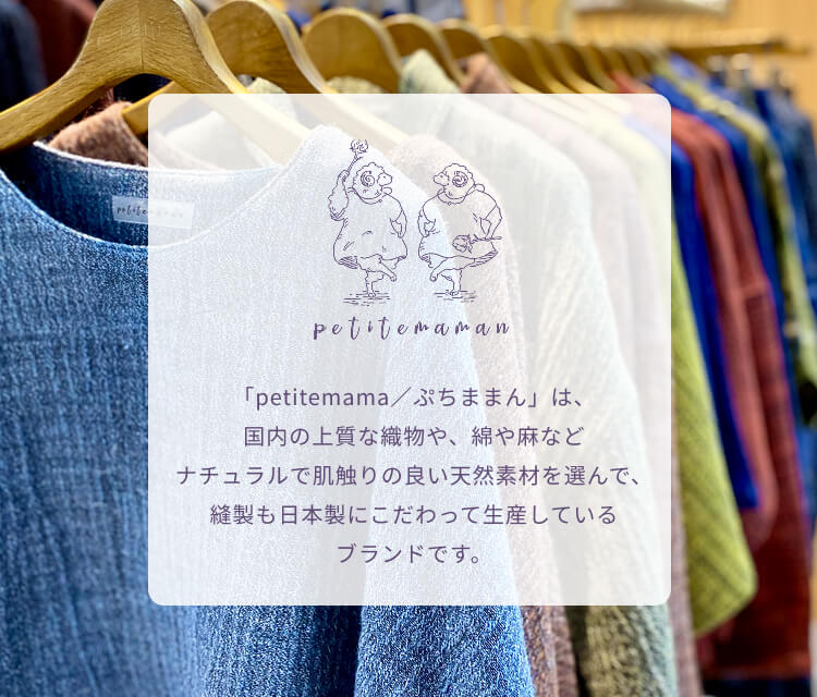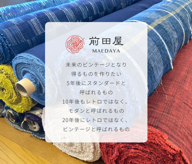 国内産地の上質な織物、オーガニックコットンや麻などナチュラルで肌触りの良い天然素材を厳選して使用しています。 丈夫で長く着ていただけるもの、時間を経てより良く変化していく生地にこだわっています。 一部のテキスタイルは、織屋に色柄から依頼をしてオリジナルで生産しています。