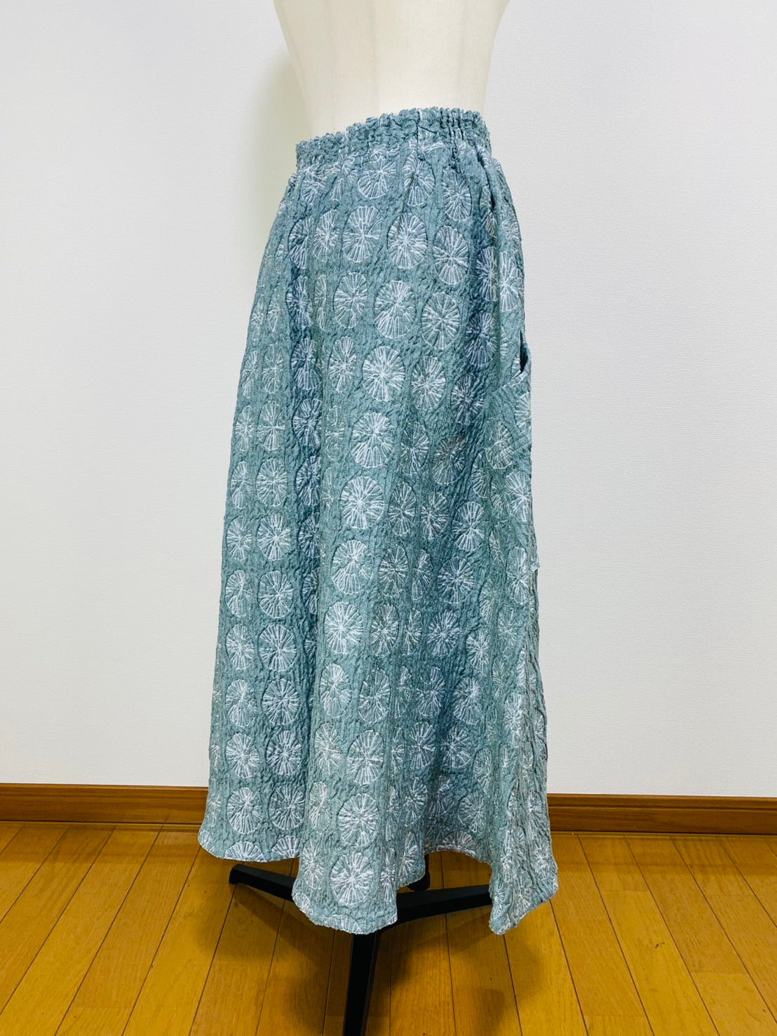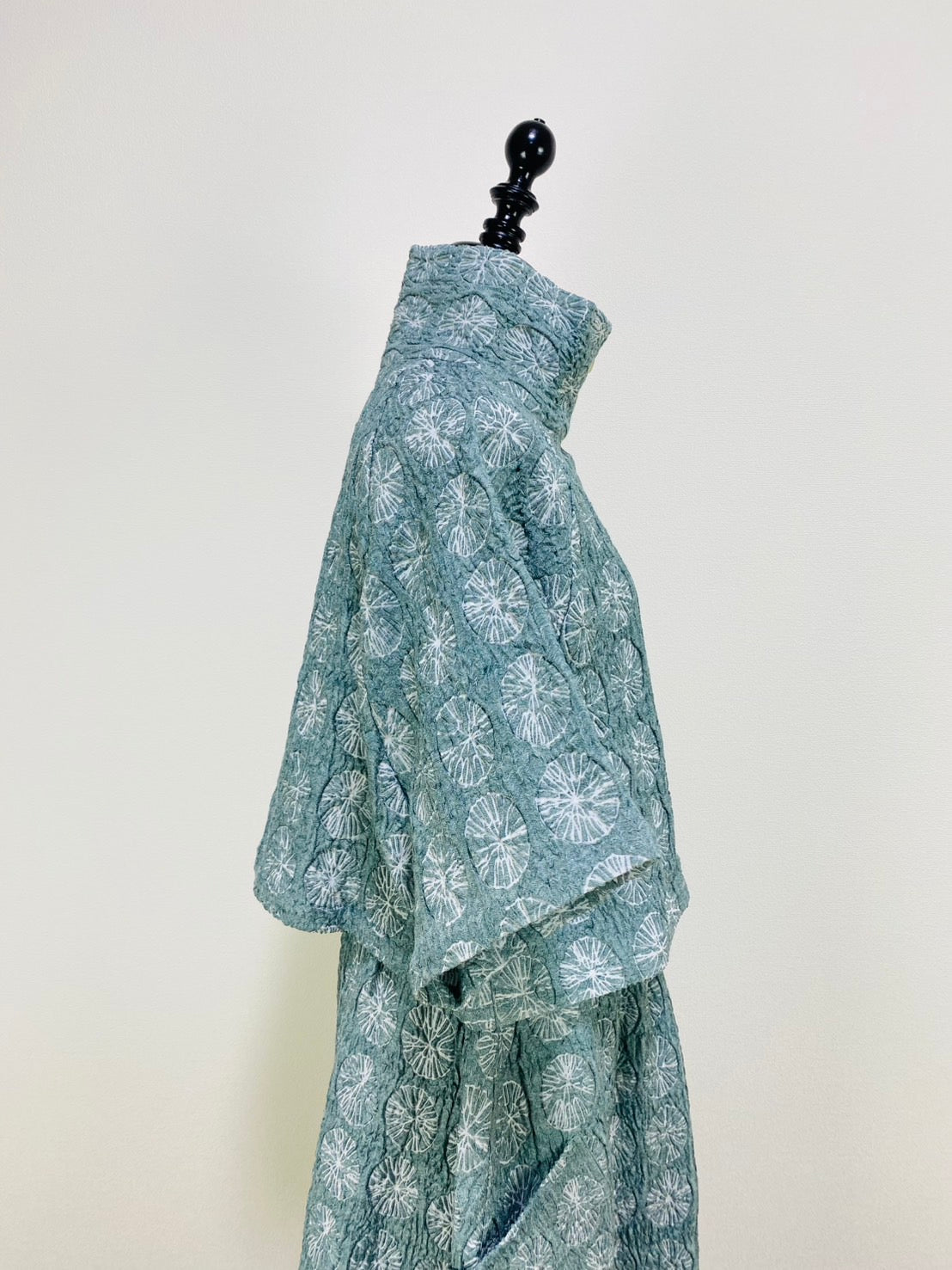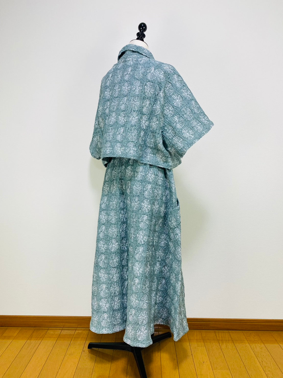 【ネット限定品】富士吉田ジャガード織 セットアップ ボレロ風ジャケット フレアースカート ライトブルー