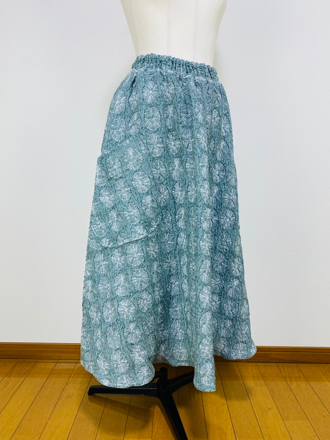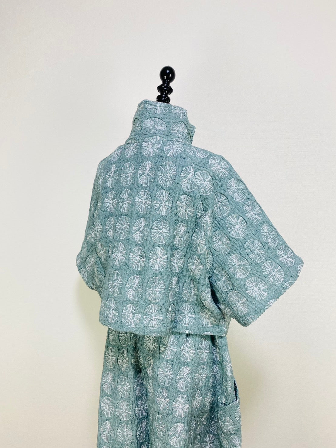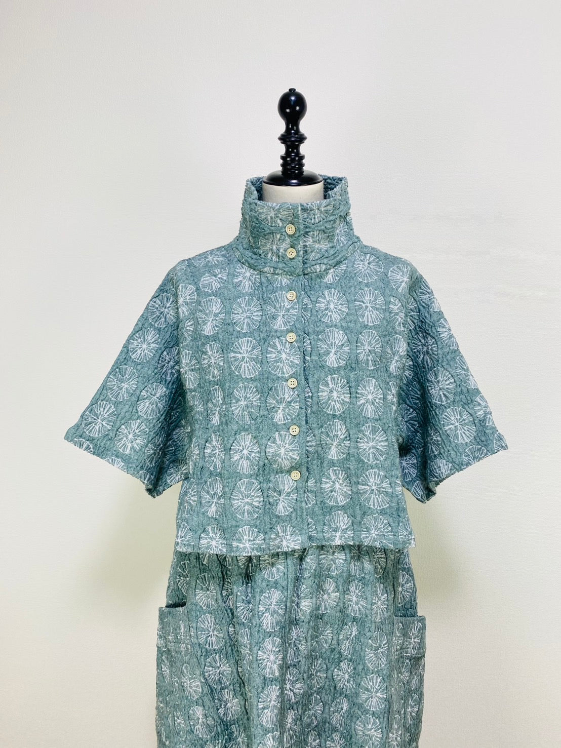 【ネット限定品】富士吉田ジャガード織 セットアップ ボレロ風ジャケット フレアースカート ライトブルー