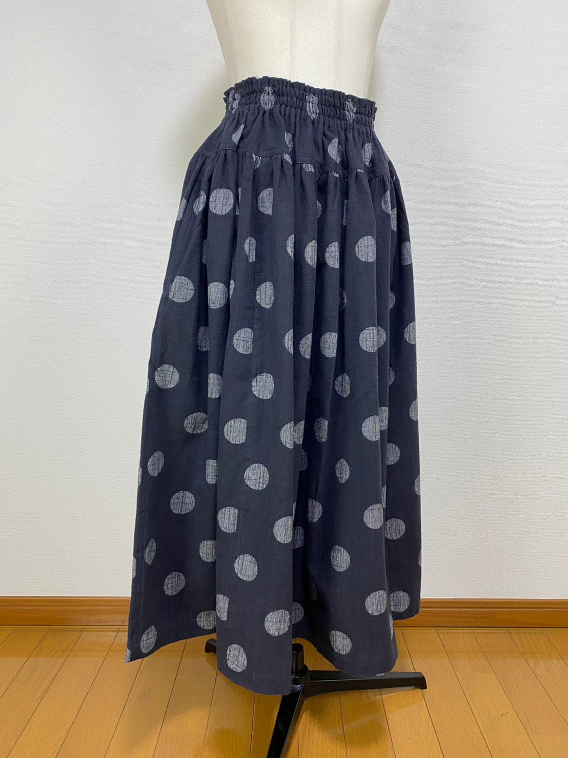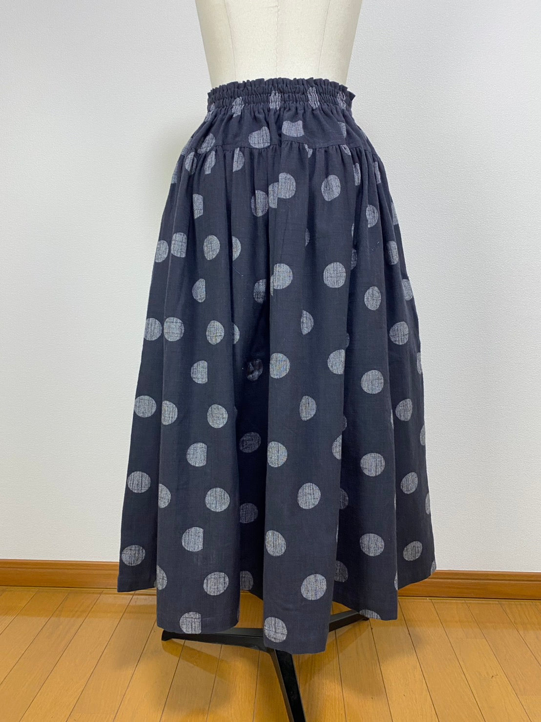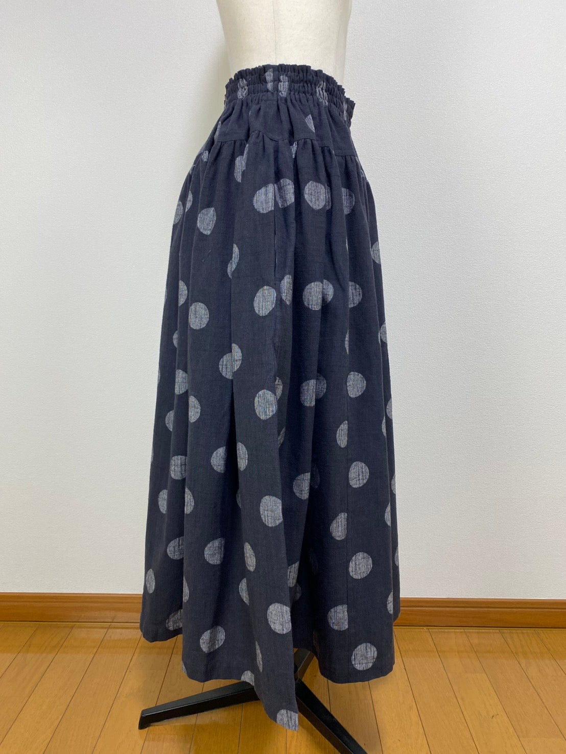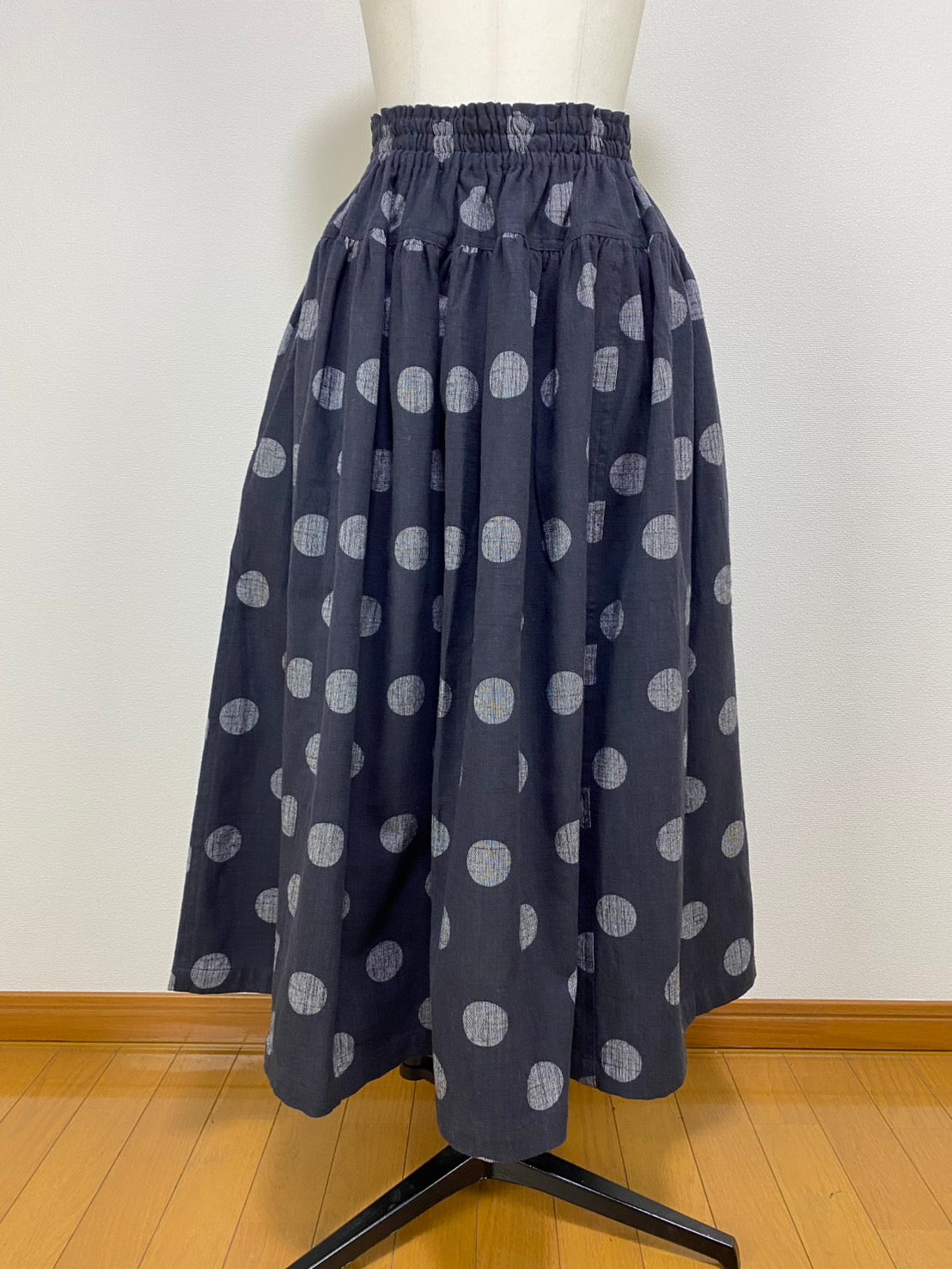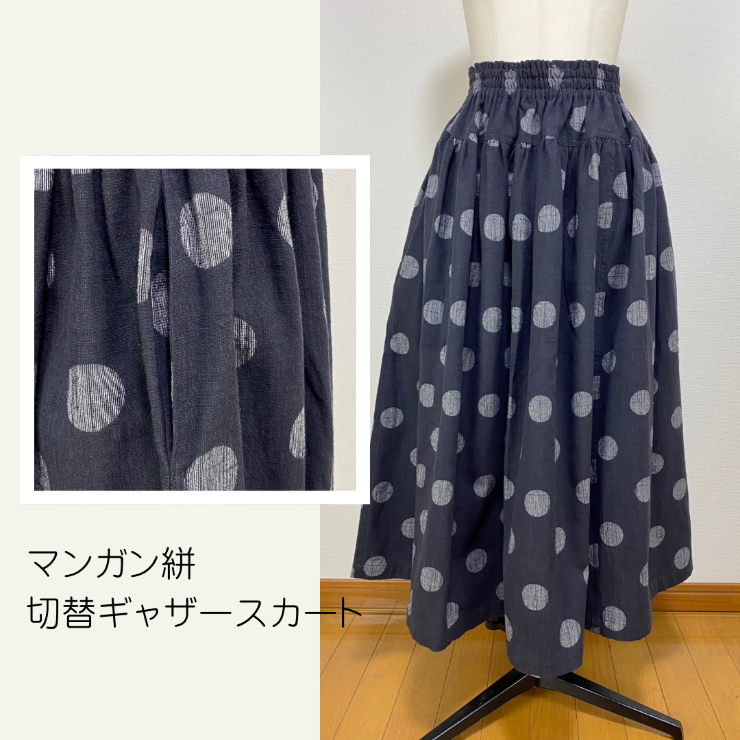 【マンガン絣】 切替ギャザースカート スミ黒 ドット大 245049