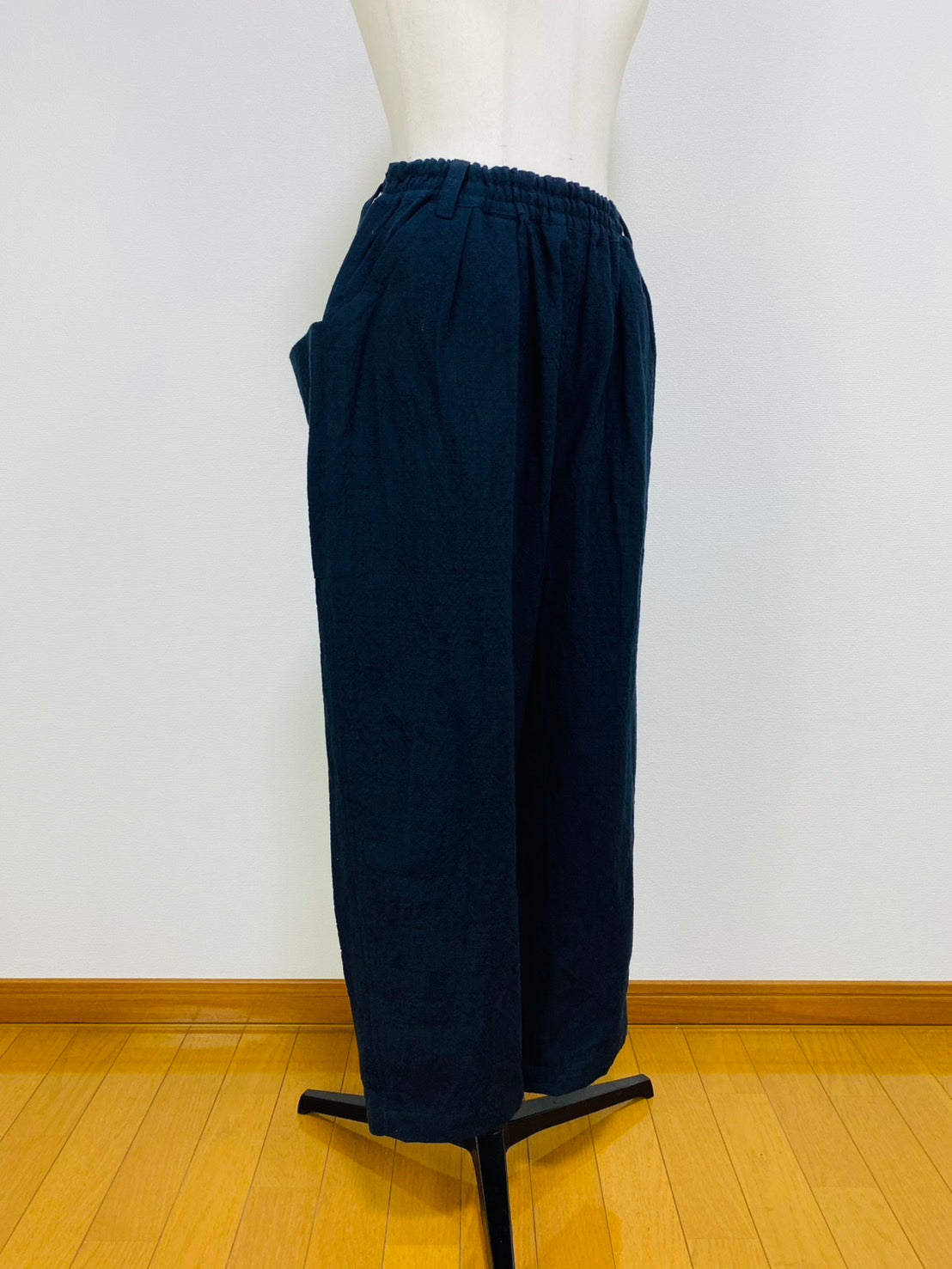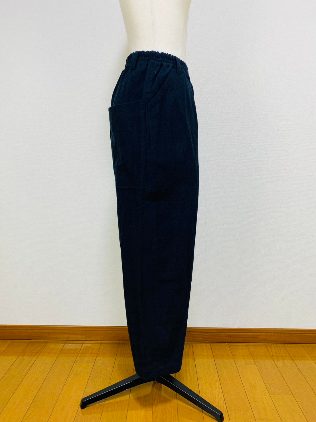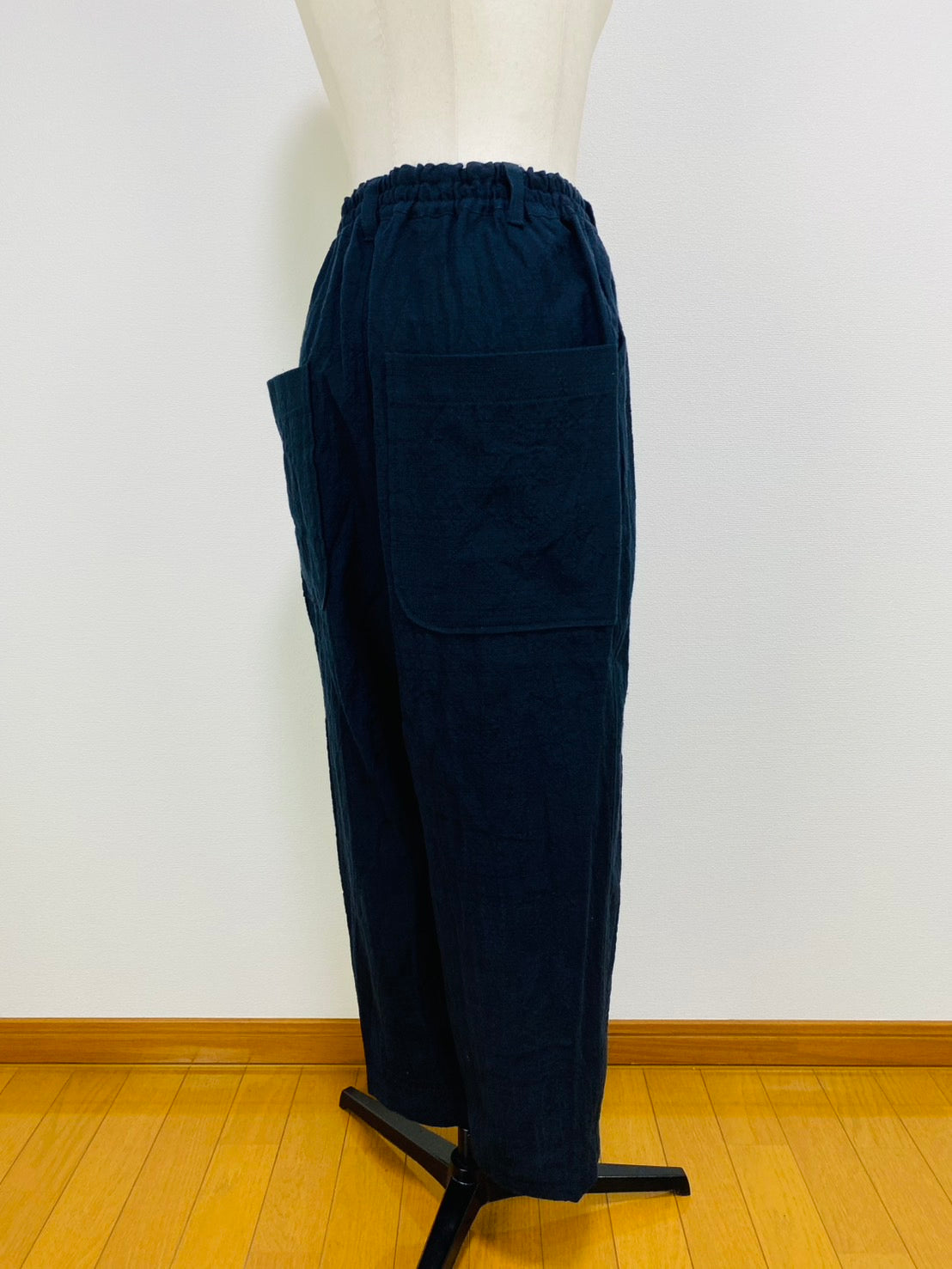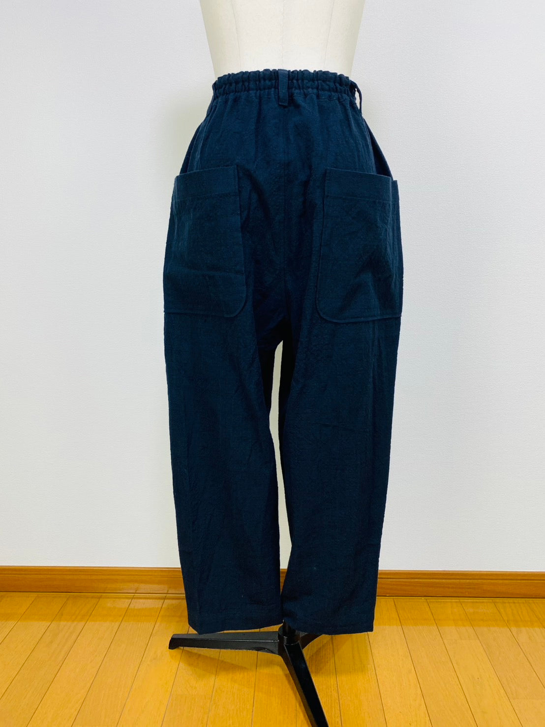 全体的にゆったりしたシルエットで、後ろに大きなポケットが付いてデザインポイントになっています。