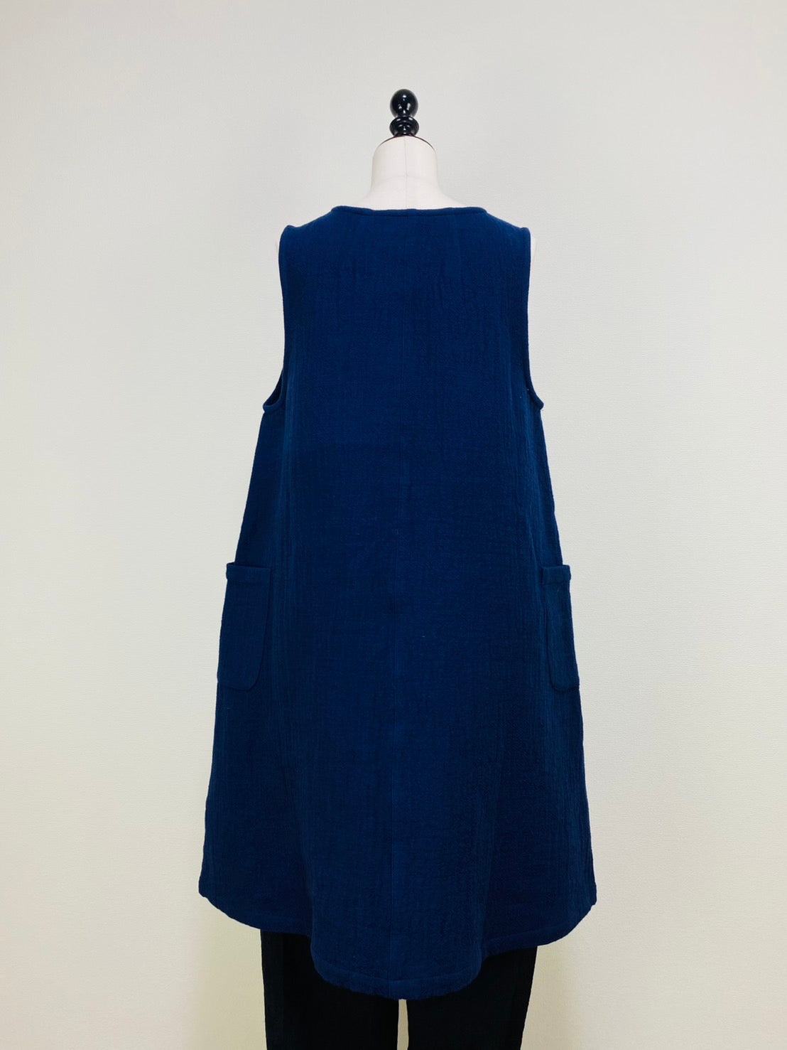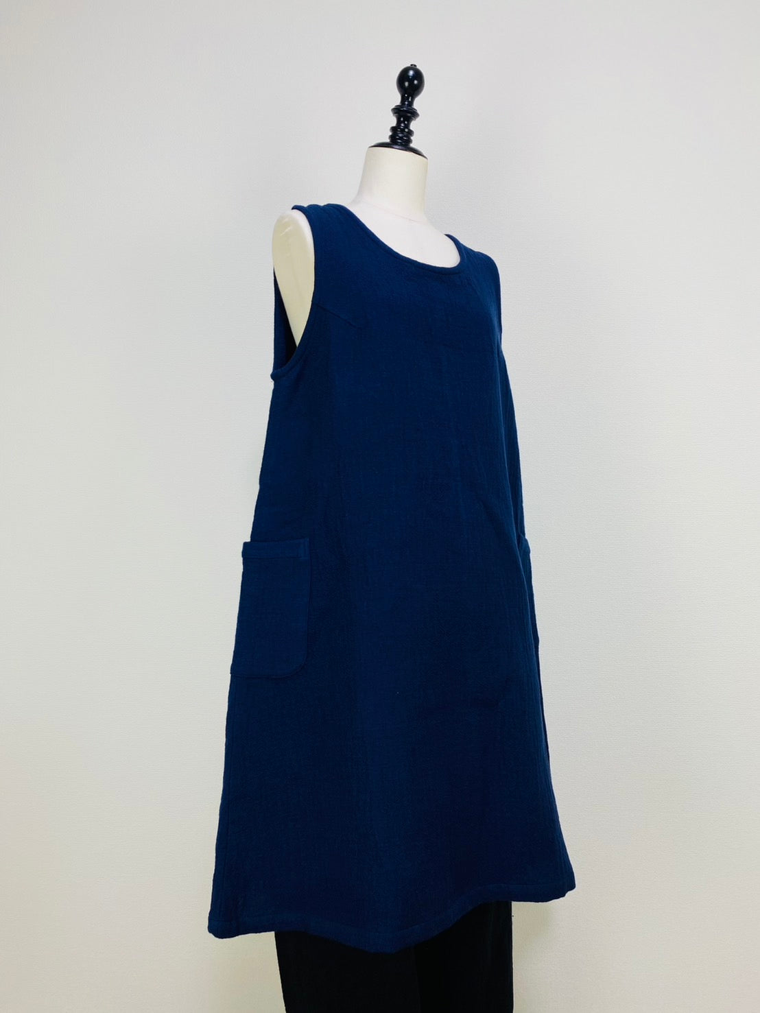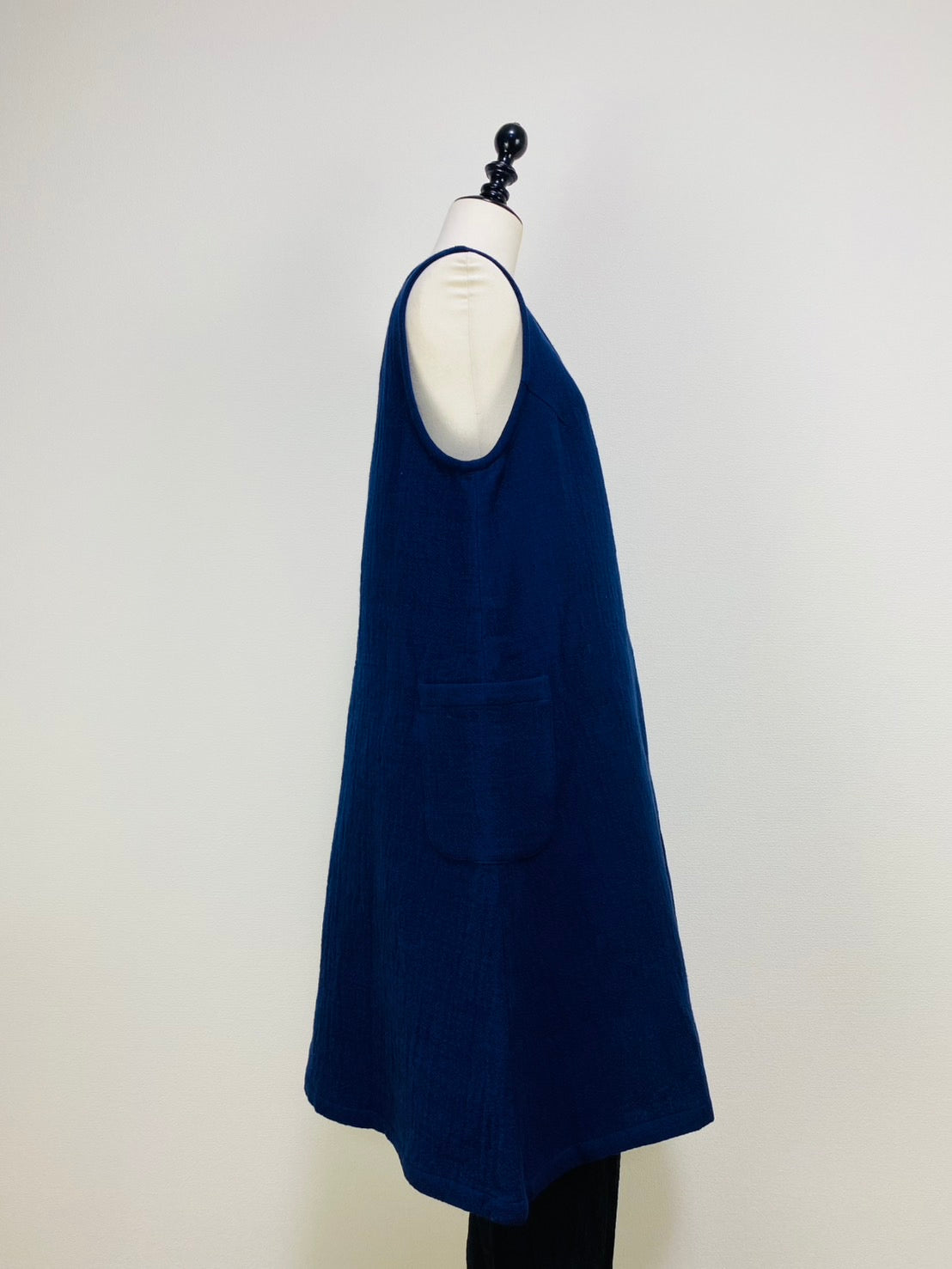 ゆったりとしたフレアーシルエットのタブリエ(短めのジャンパースカート)です。