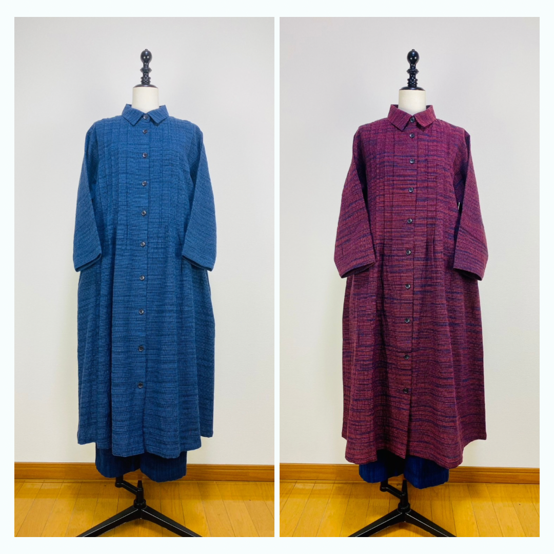 【遠州織物】ピンタックのワンピース 2カラー みじん絣楊柳 252091