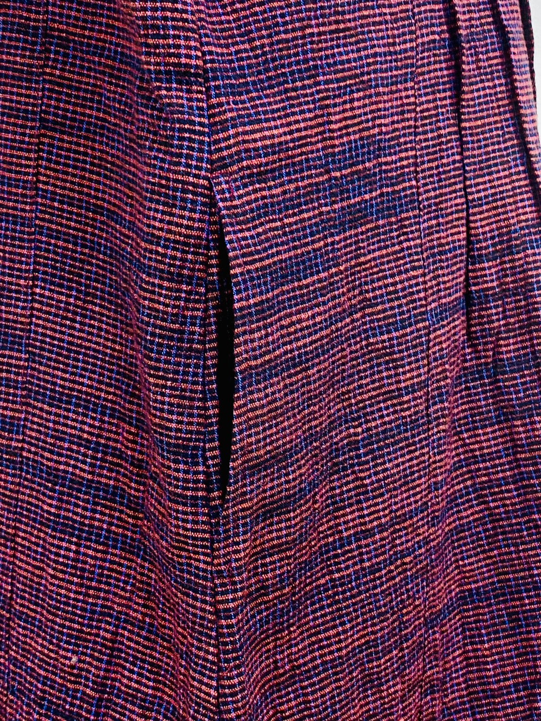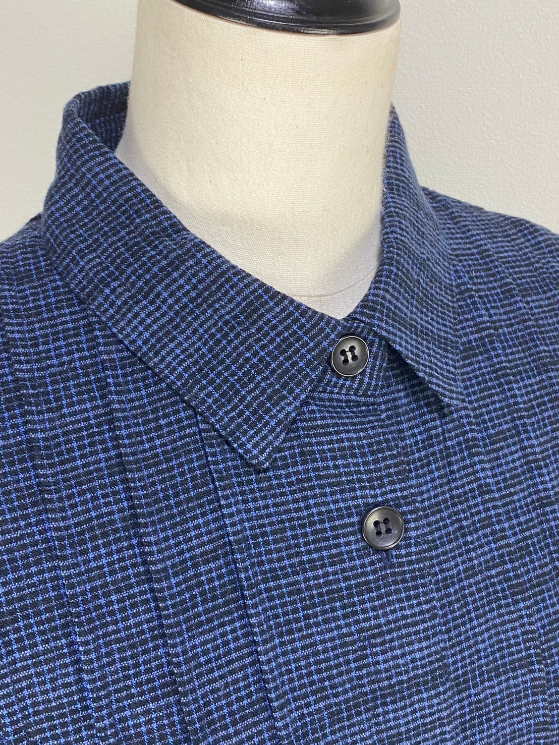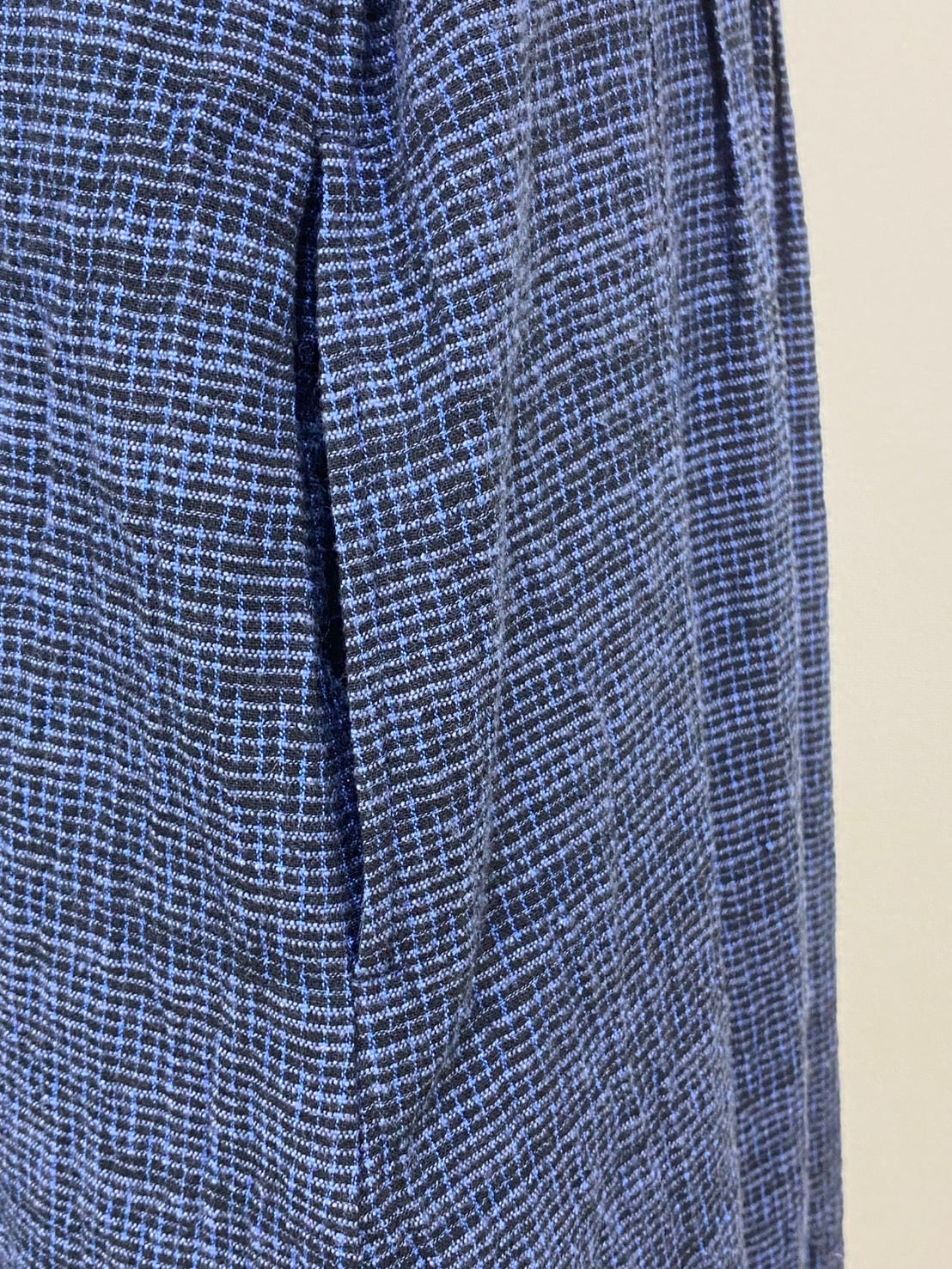 この生地は、青く染めた絣糸を縦に入れています。