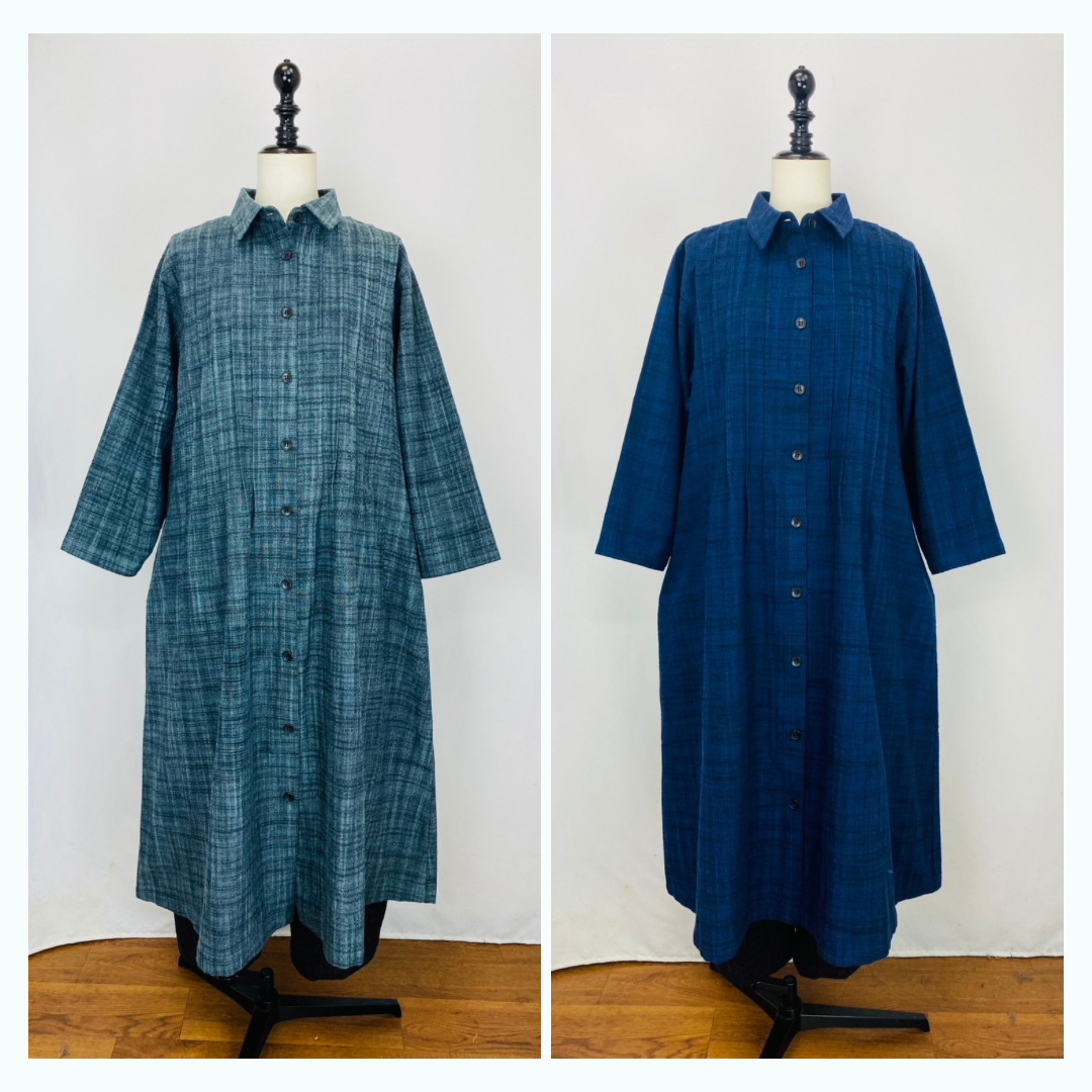 【遠州織物】 ピンタックのワンピース 2カラー 逆スラブ 252091