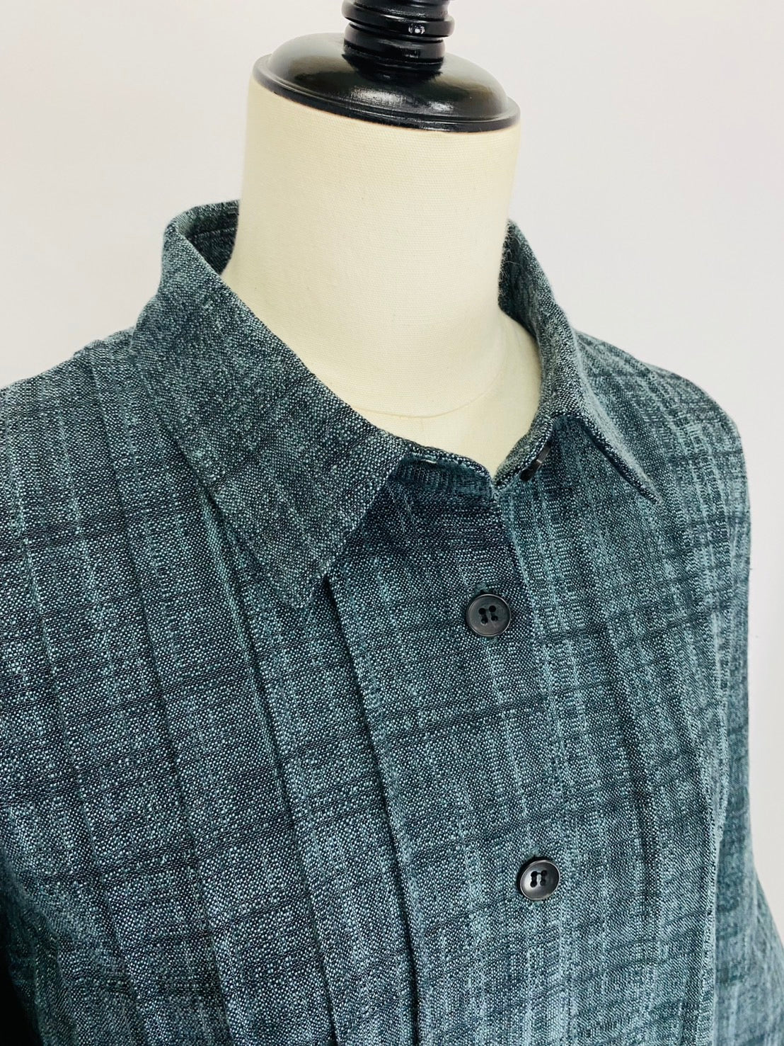 上見頃にピンタックの入った大人かわいいデザインの前開きワンピースです。