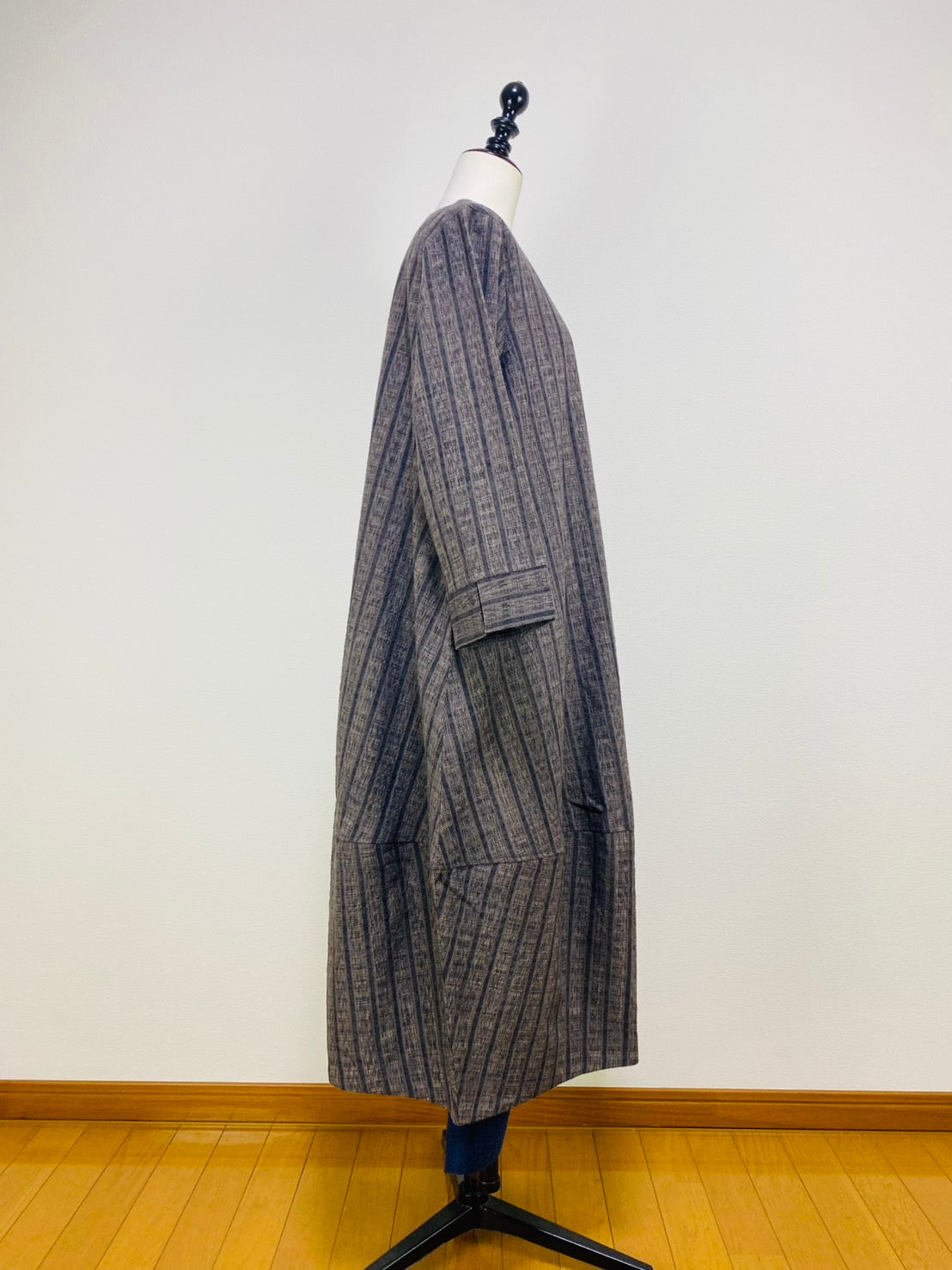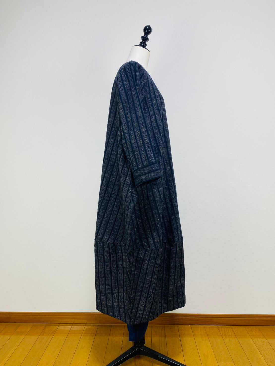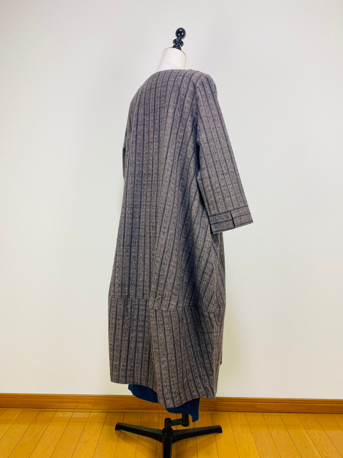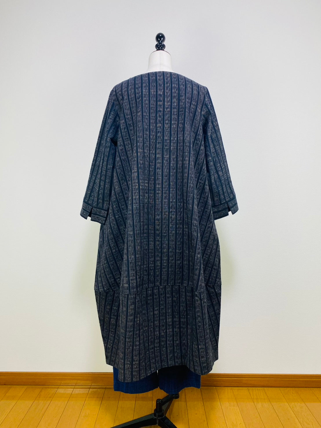 【遠州織物】裾切替えコクーンワンピース 2カラー 逆スラブ絣ストライプ 222101
