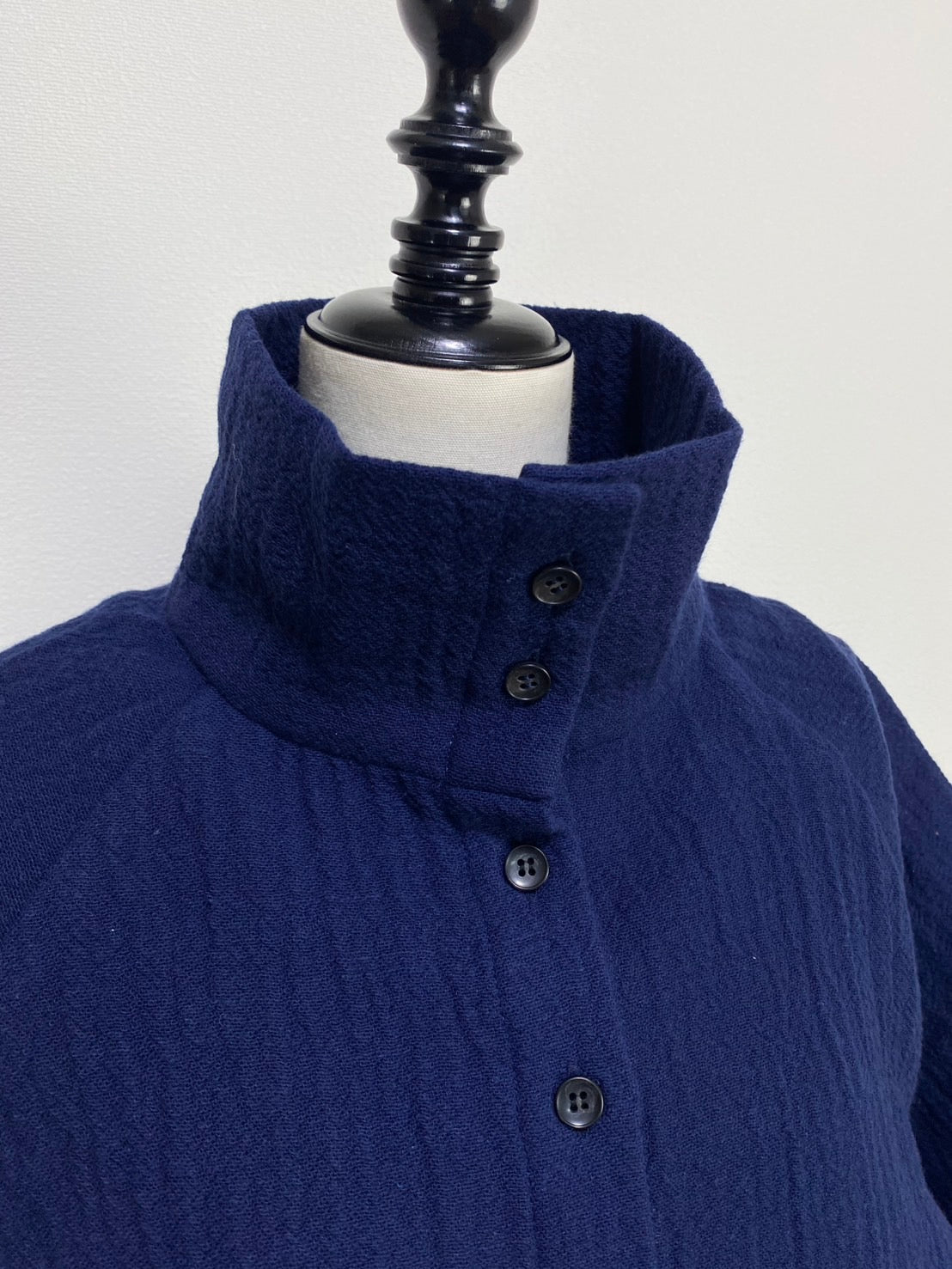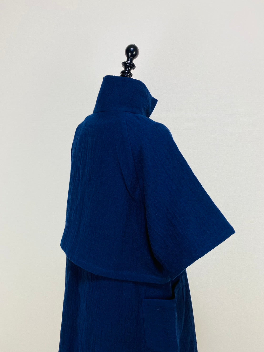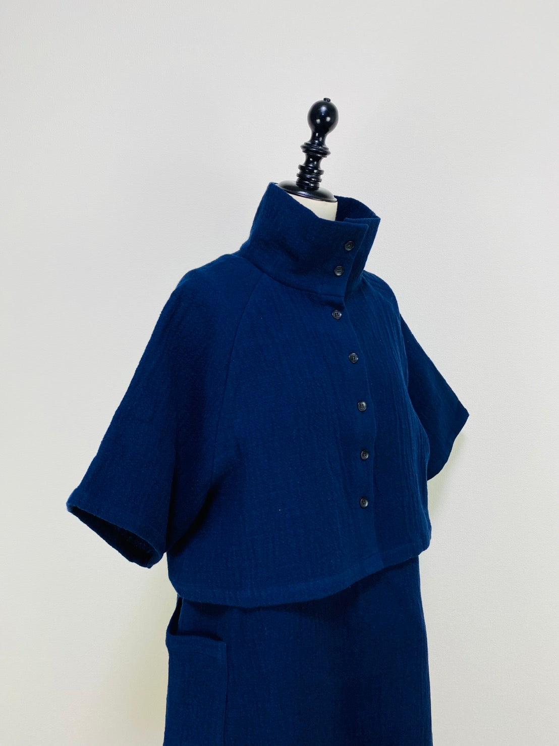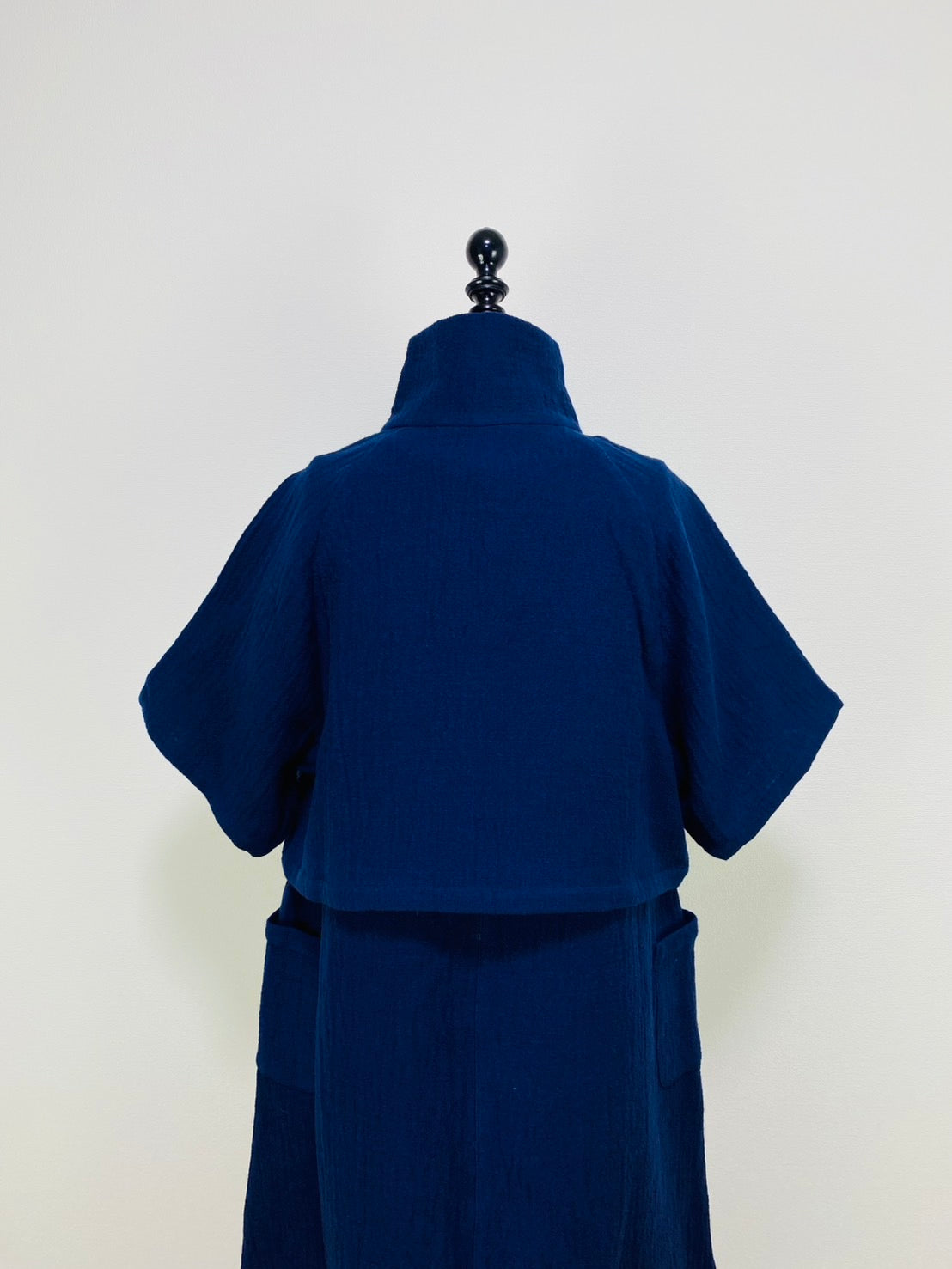 【遠州織物】ボレロ風ジャケット 逆スラブ二重織 紺 241012