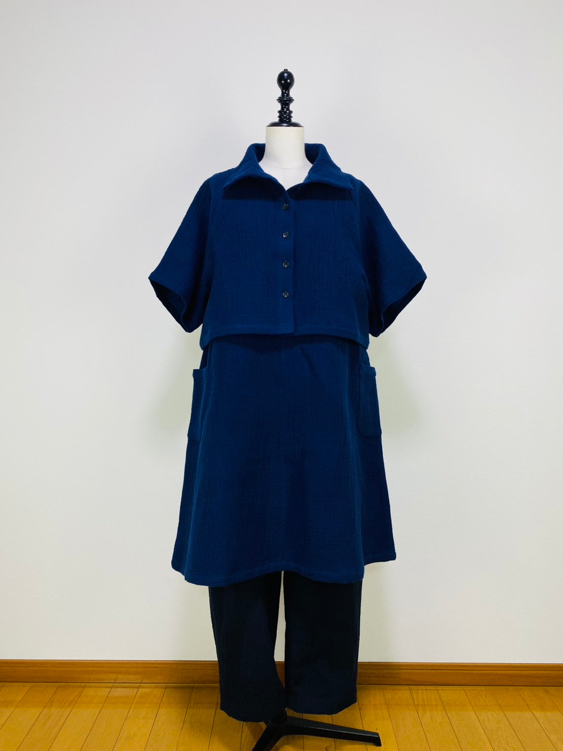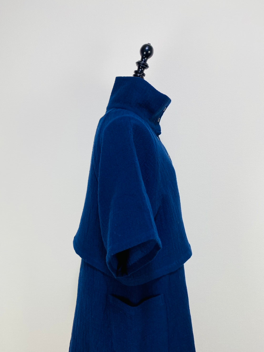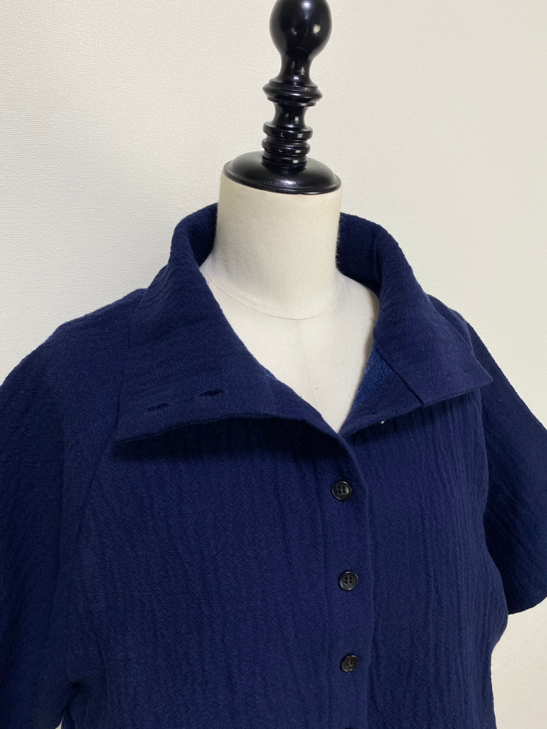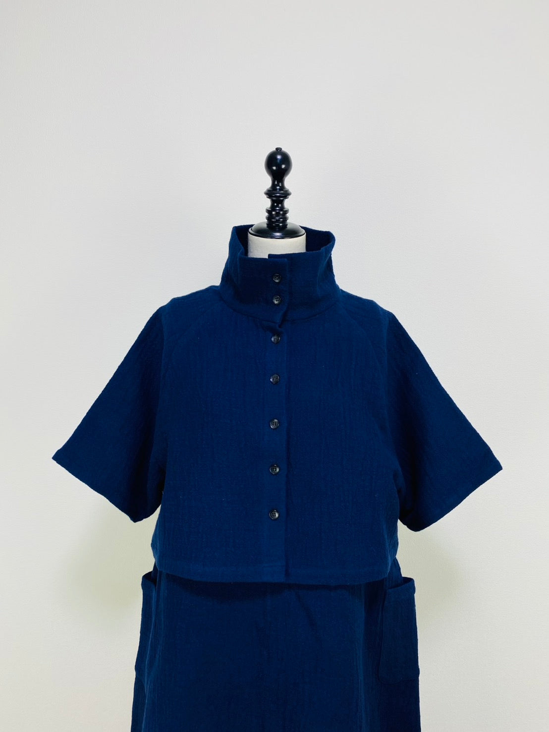 【遠州織物】ボレロ風ジャケット 逆スラブ二重織 紺 241012