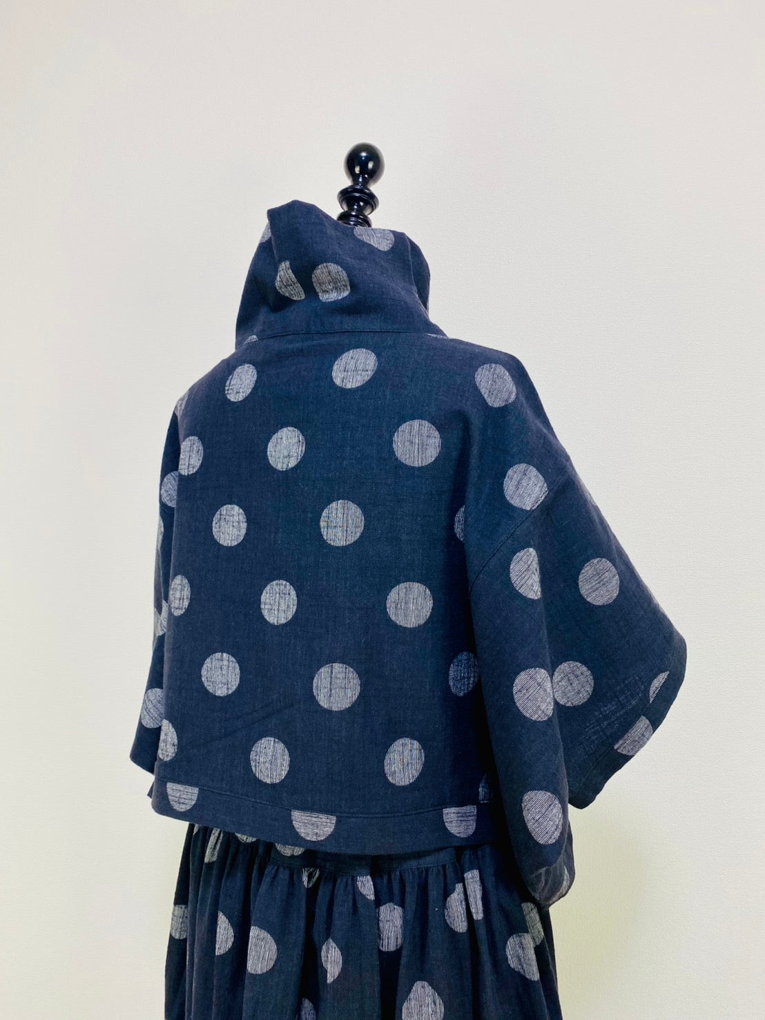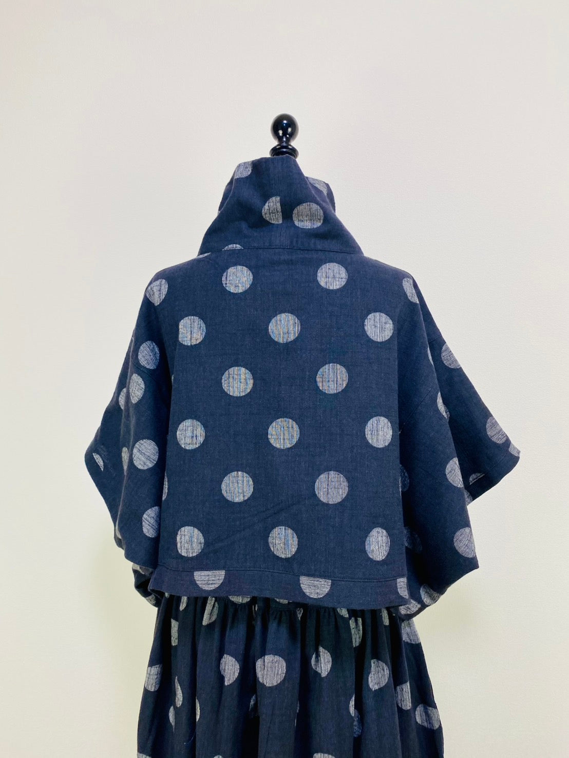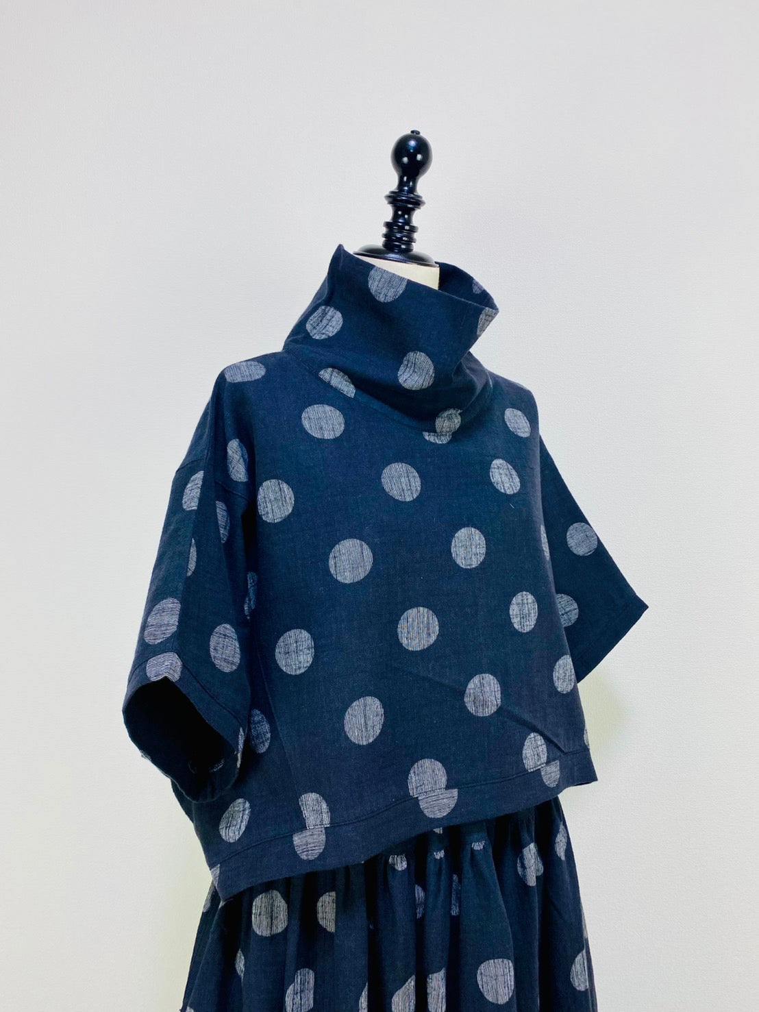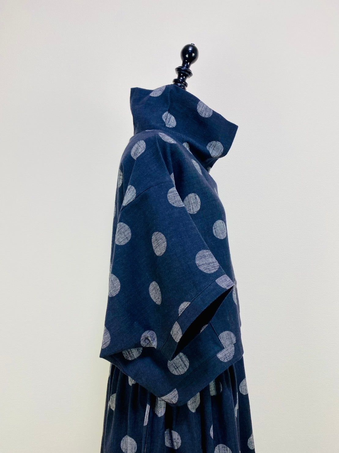 【マンガン染】ロールネック切替えポンチョ ドット大 234029-1