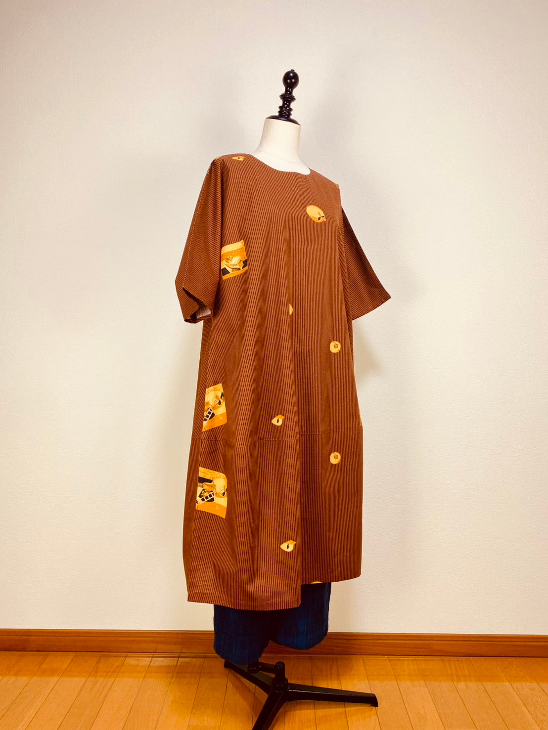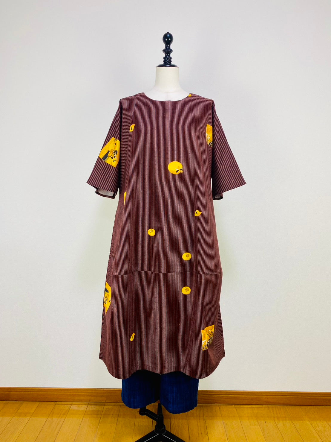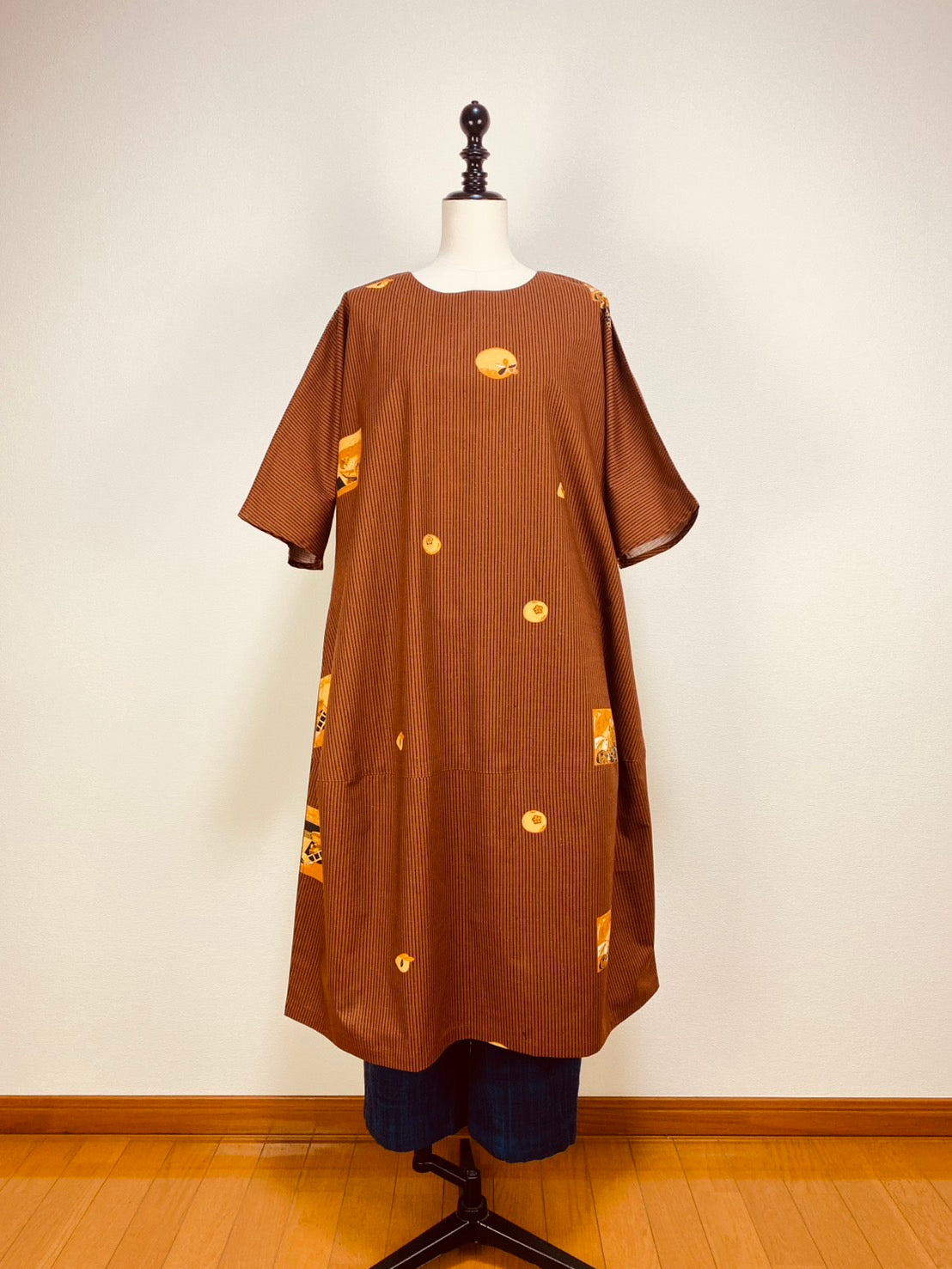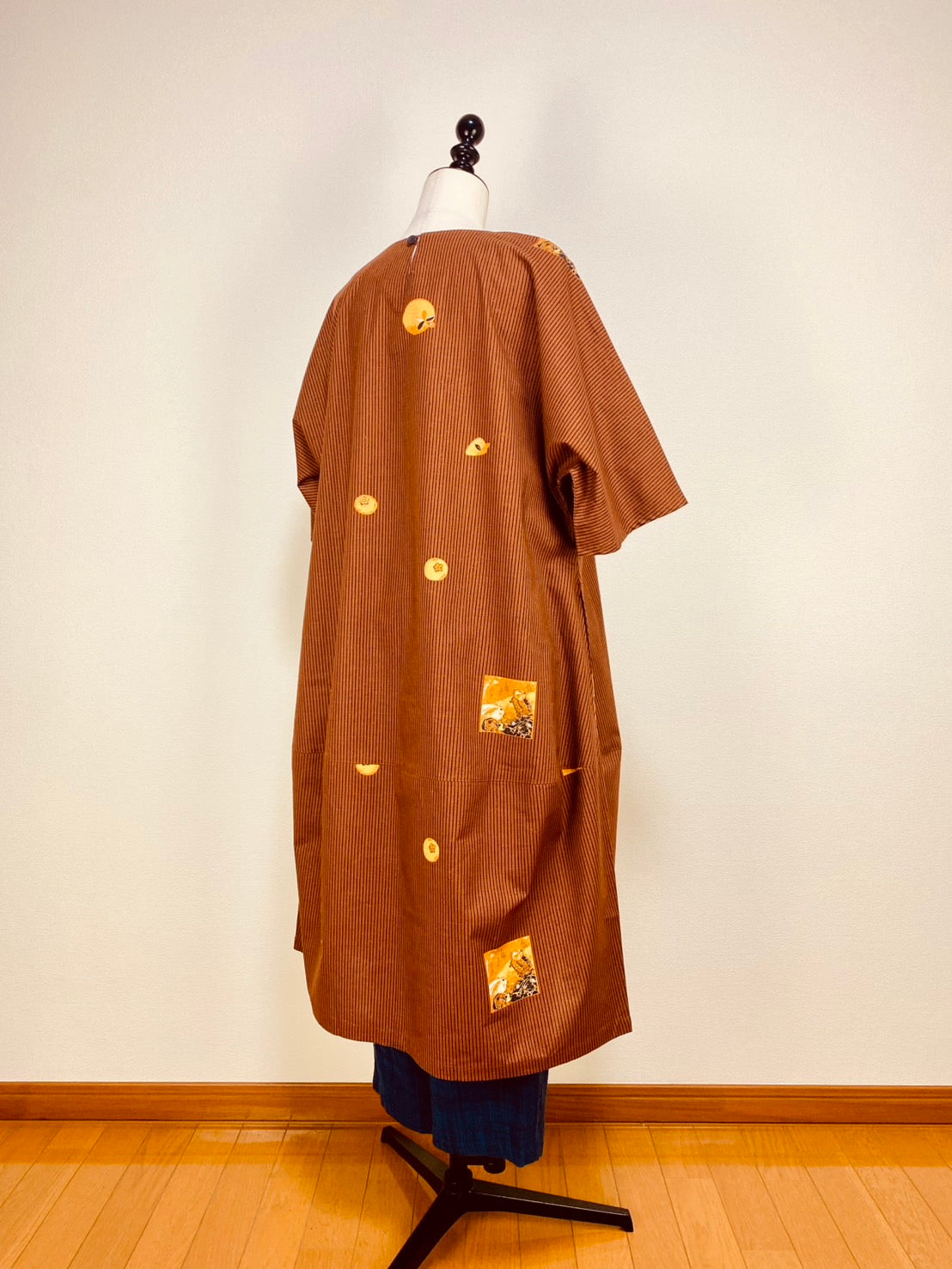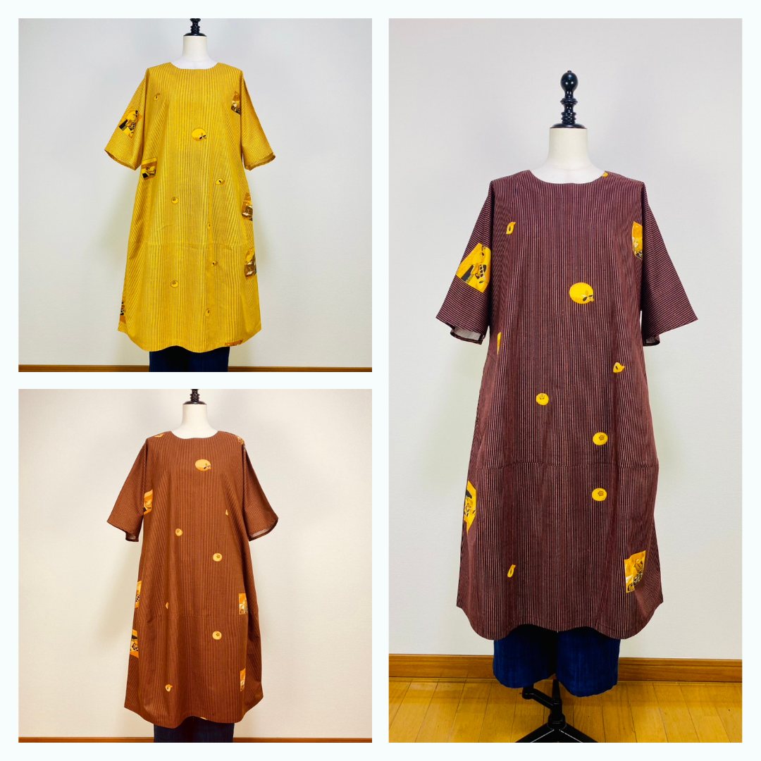 【安曇野木綿】 切替えビッグワンピース 3カラー 縞と柿 232013