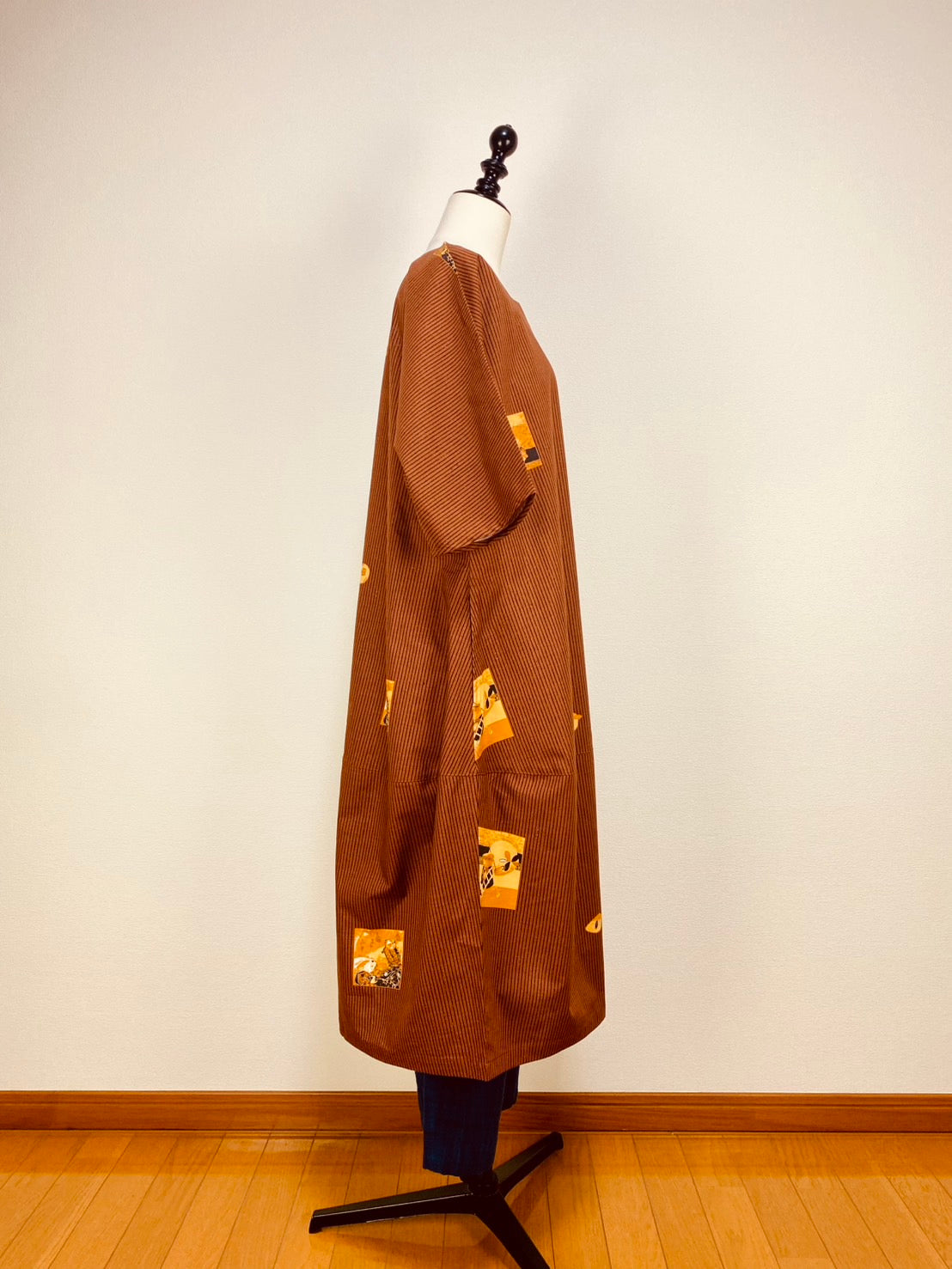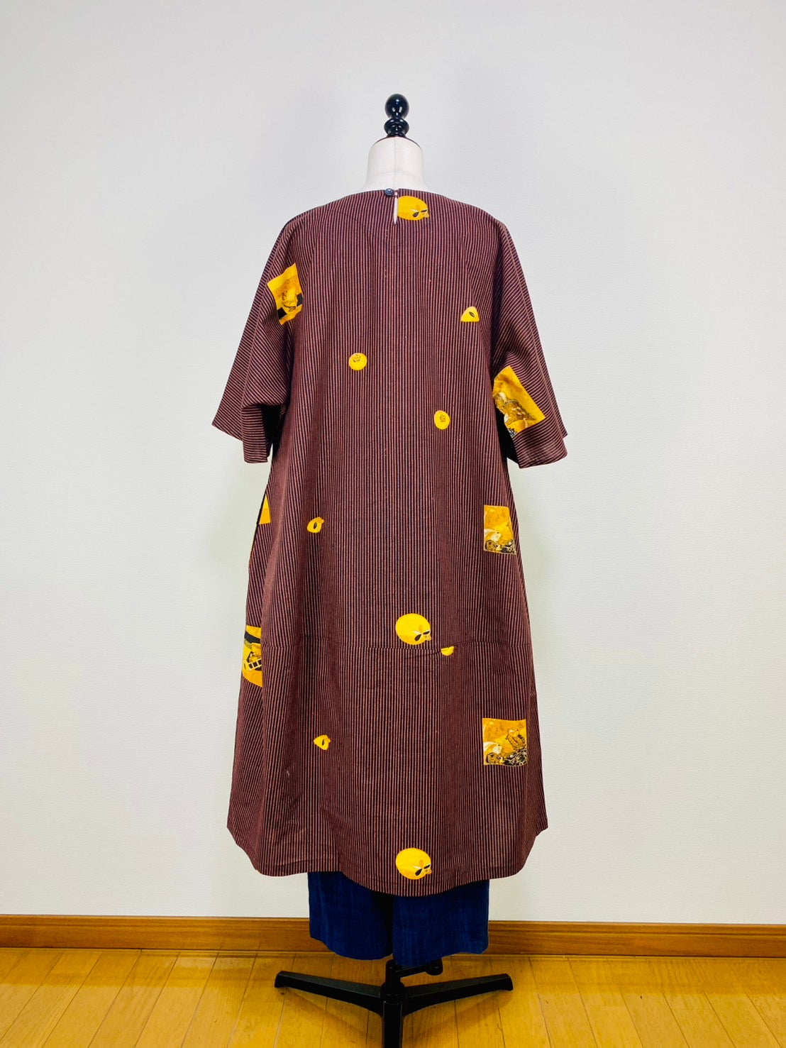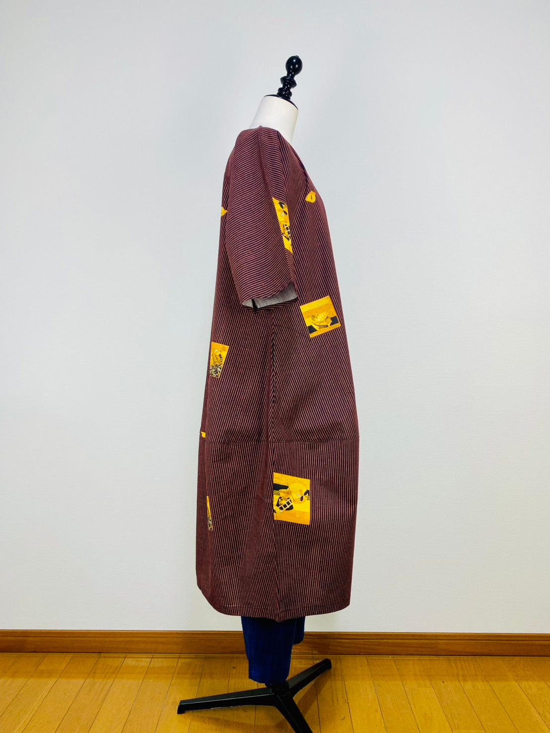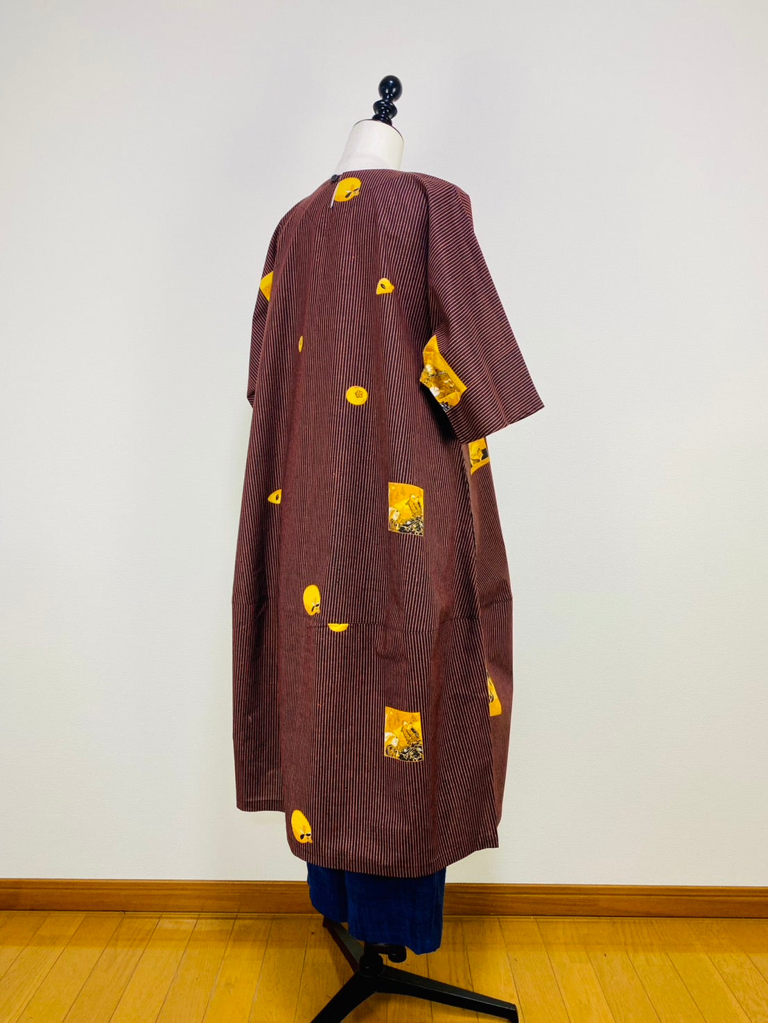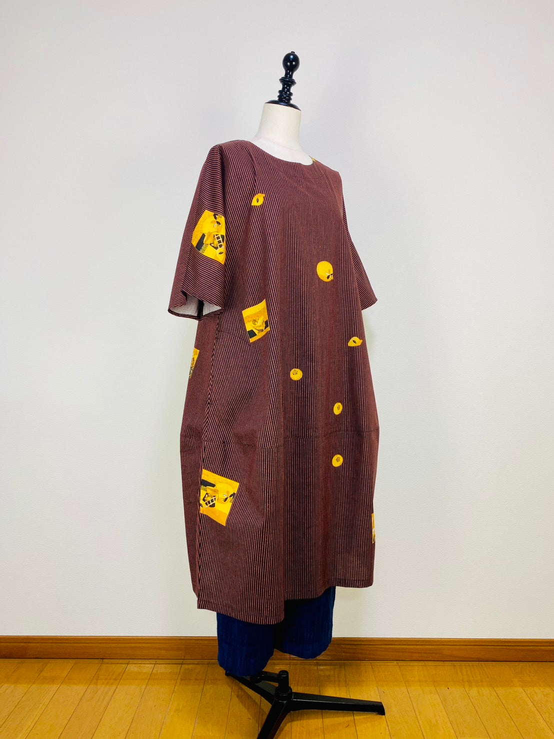 【安曇野木綿】 切替えビッグワンピース 3カラー 縞と柿 232013