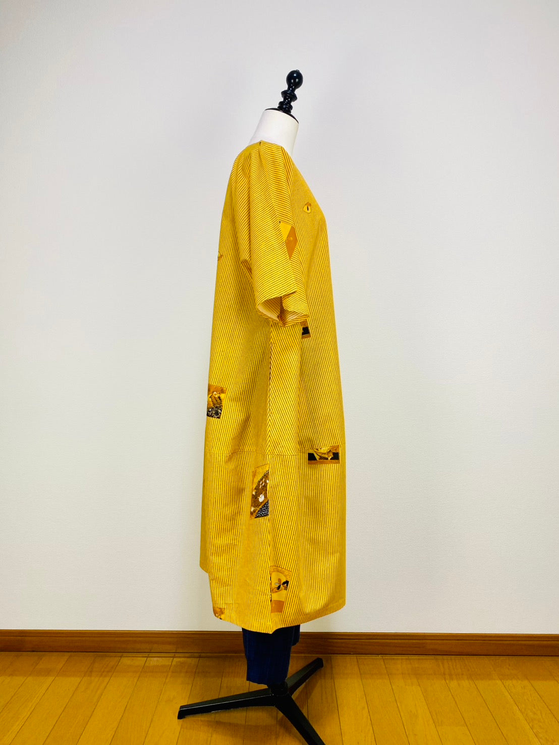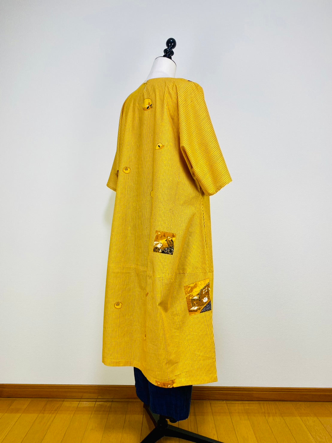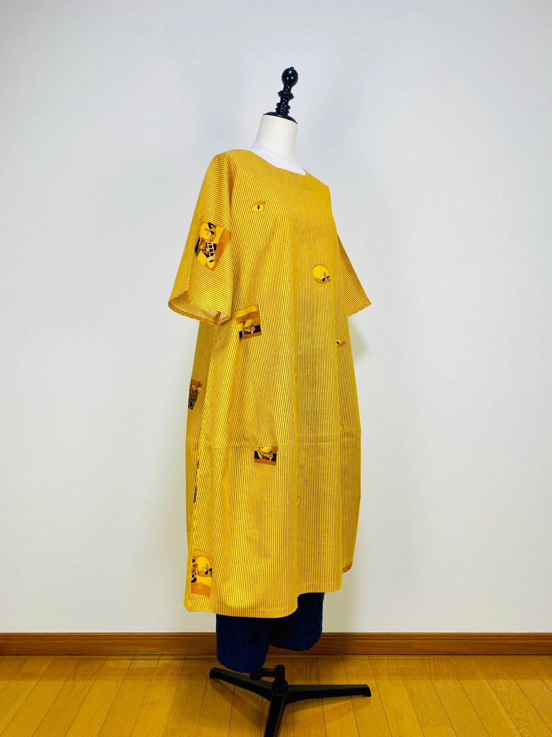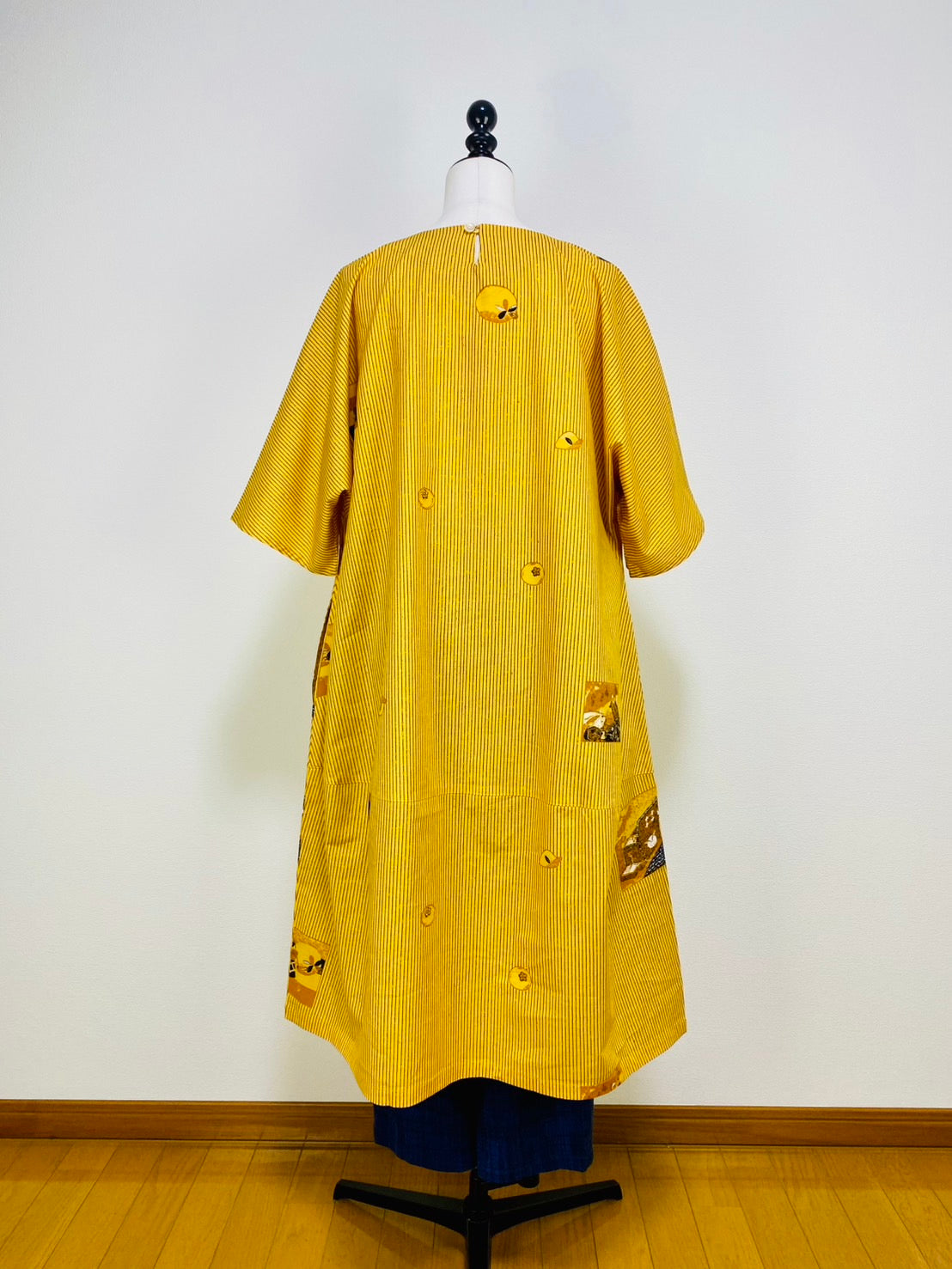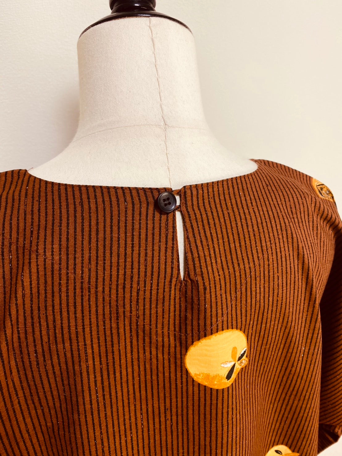 【安曇野木綿】 切替えビッグワンピース 3カラー 縞と柿 232013