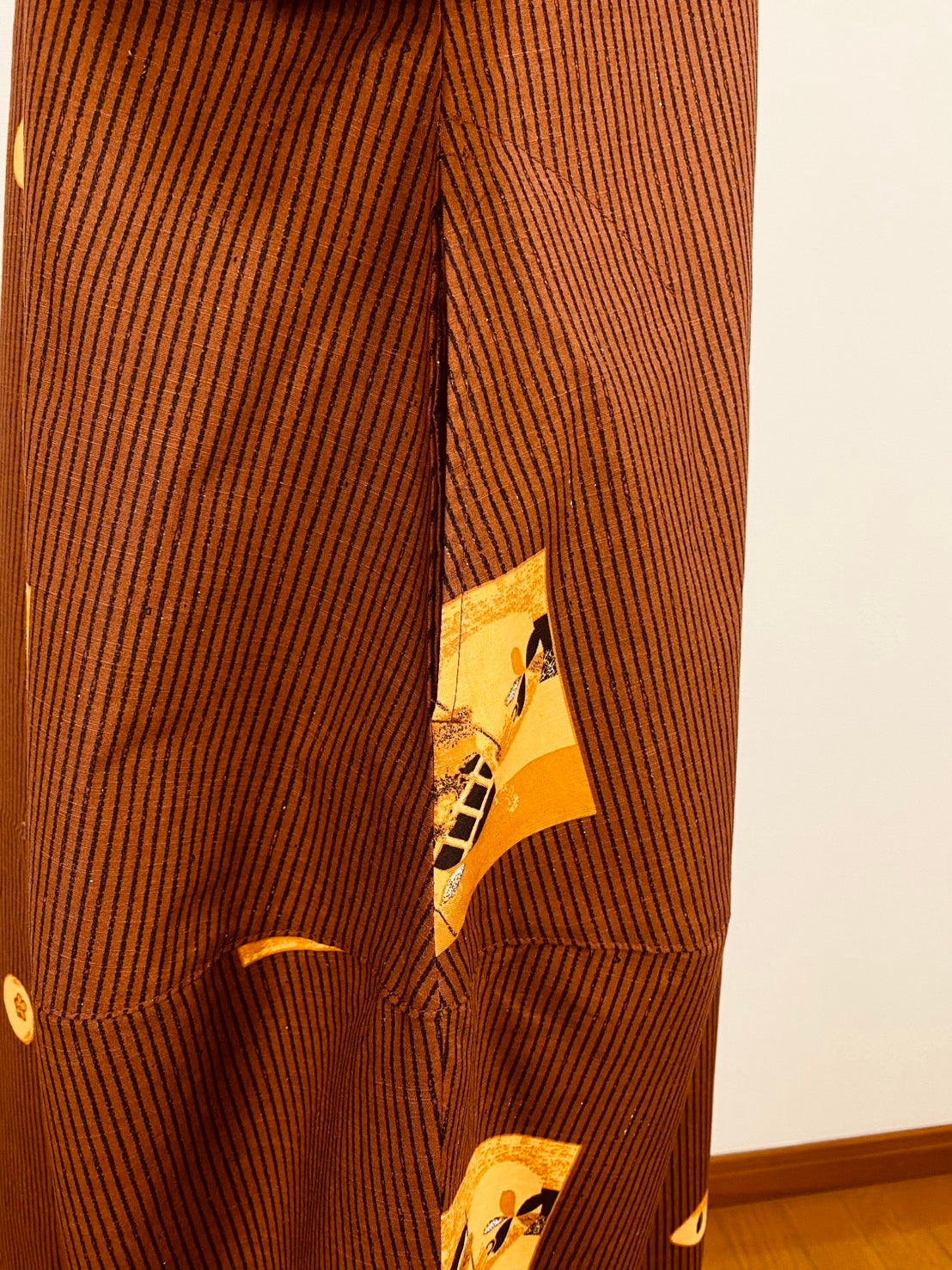 安曇野染絣の縦流れ柄を使用したワンピースです。