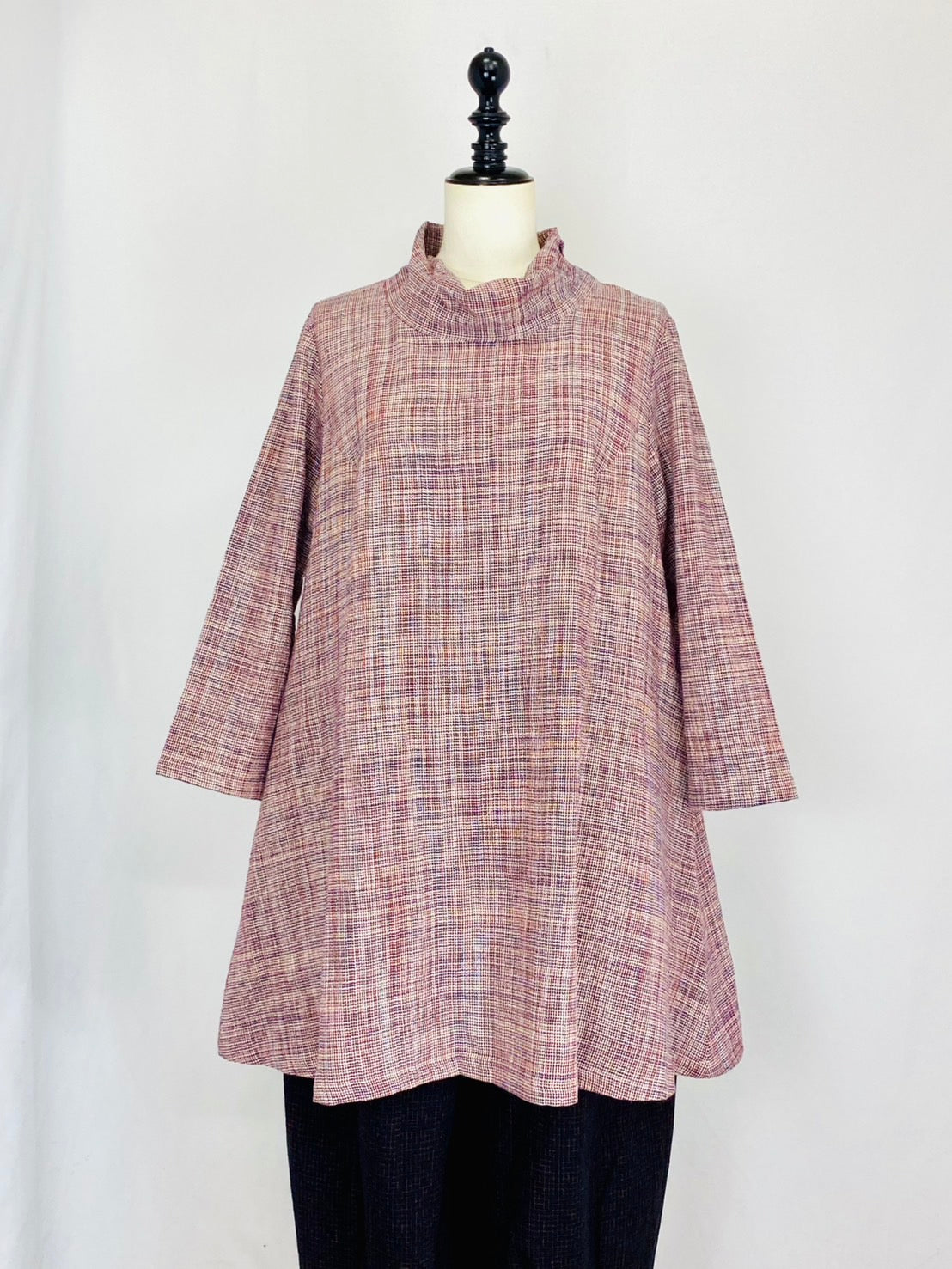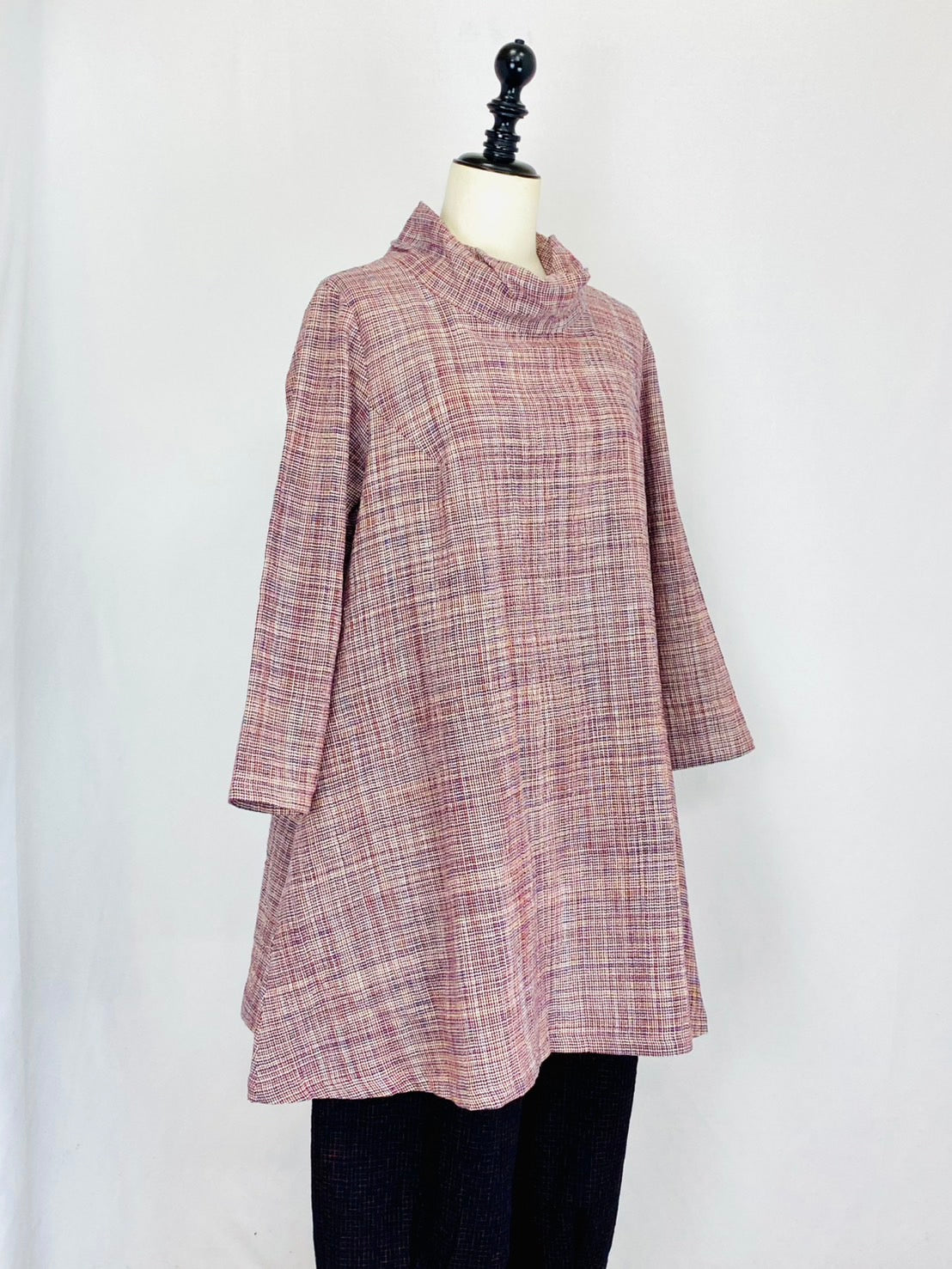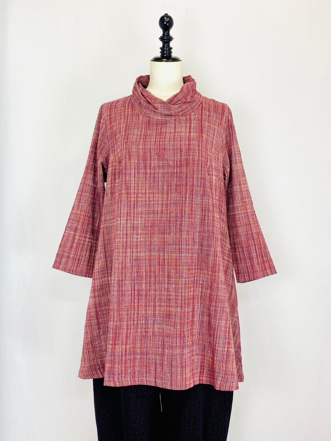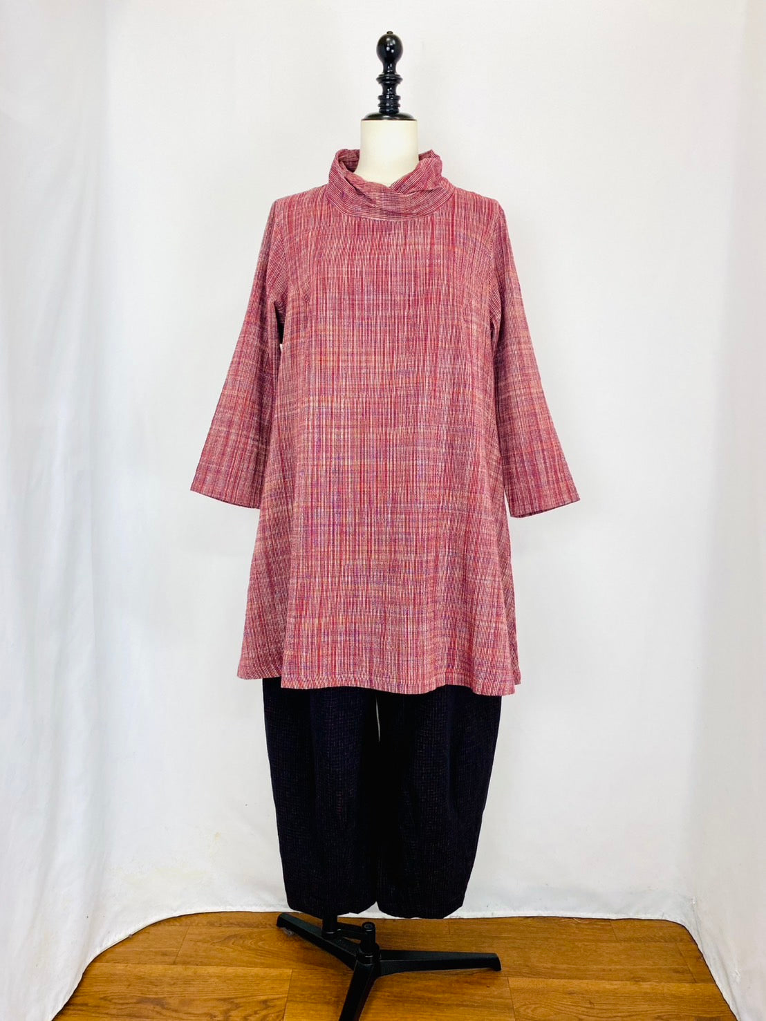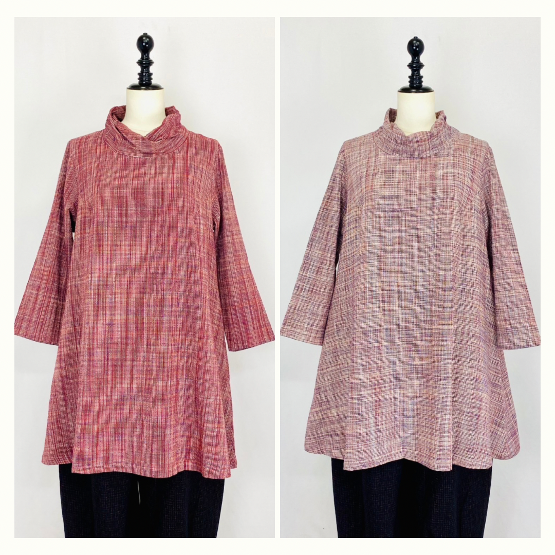 【遠州織物】 ひねり襟のチュニック 2カラー うすで縞 252101
