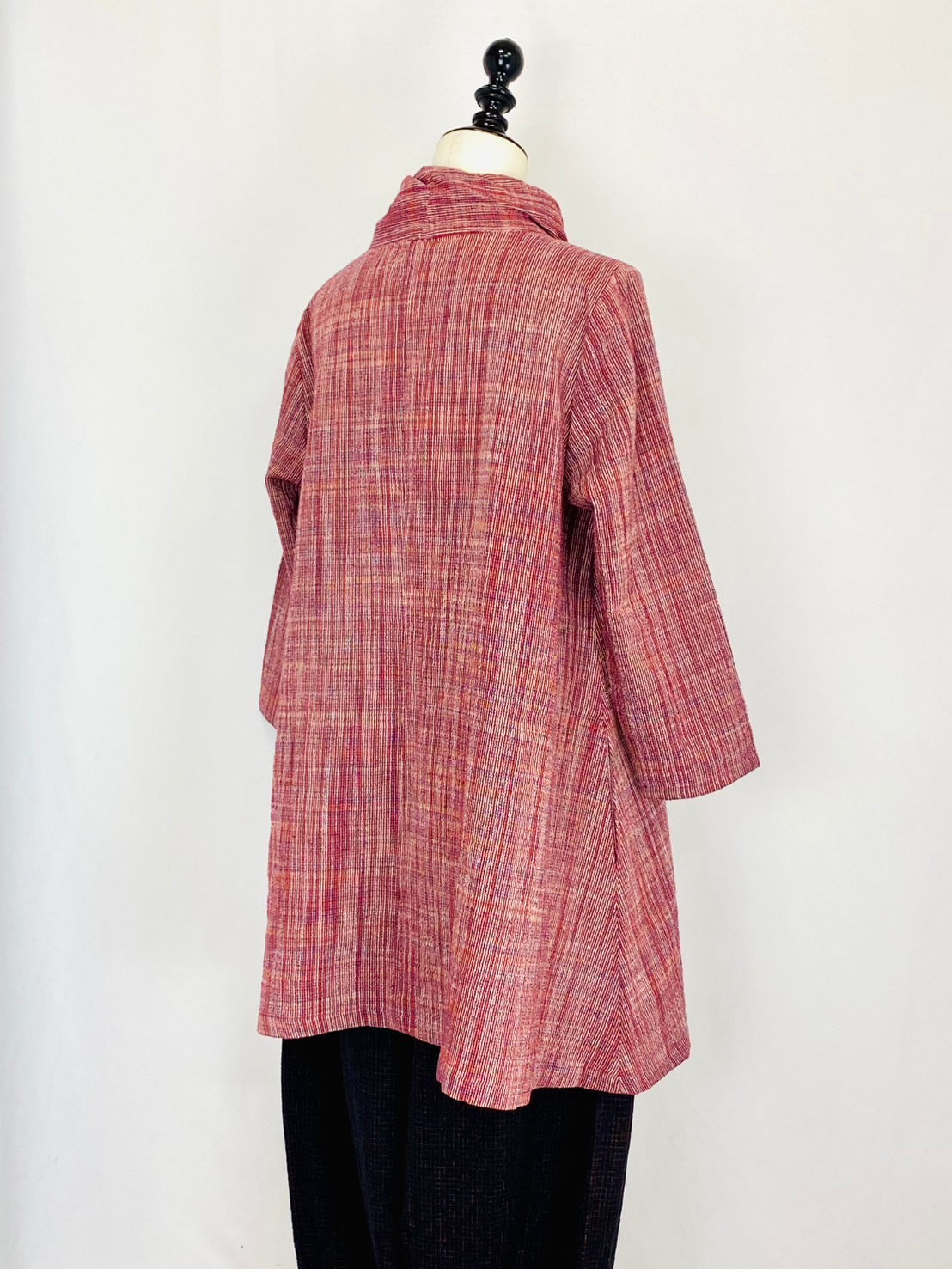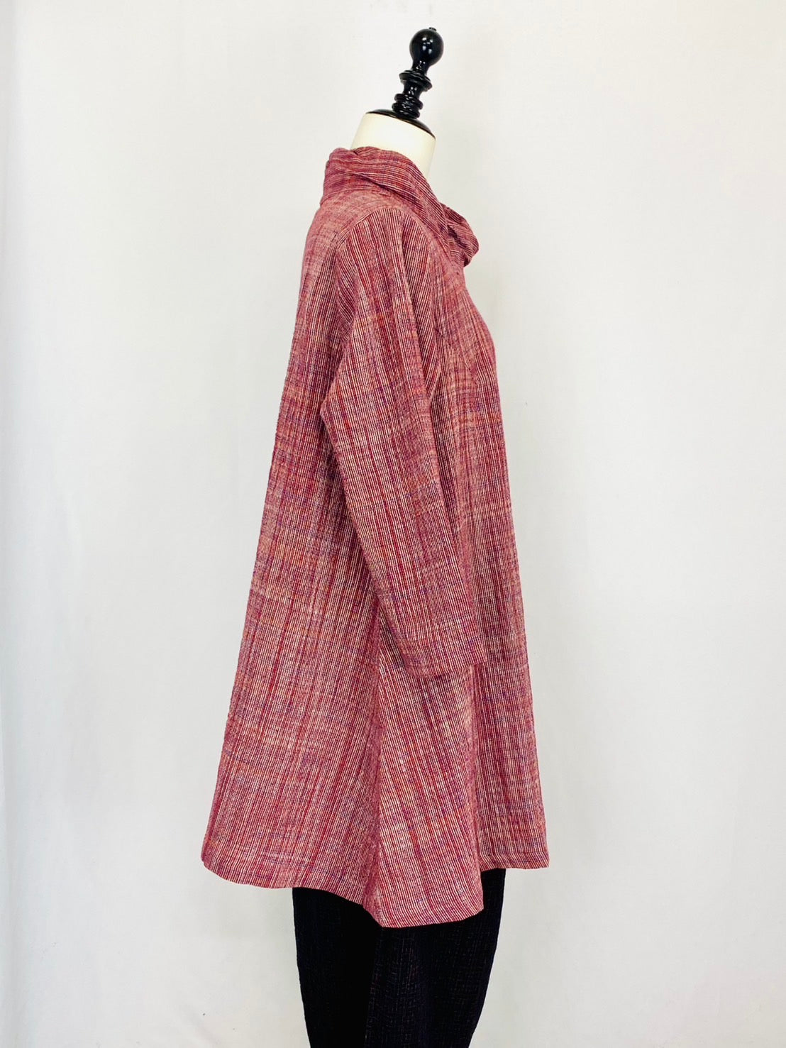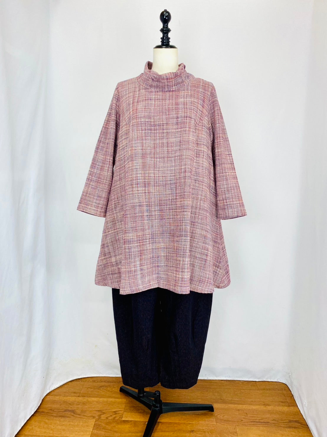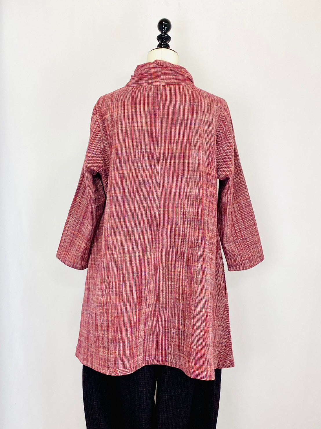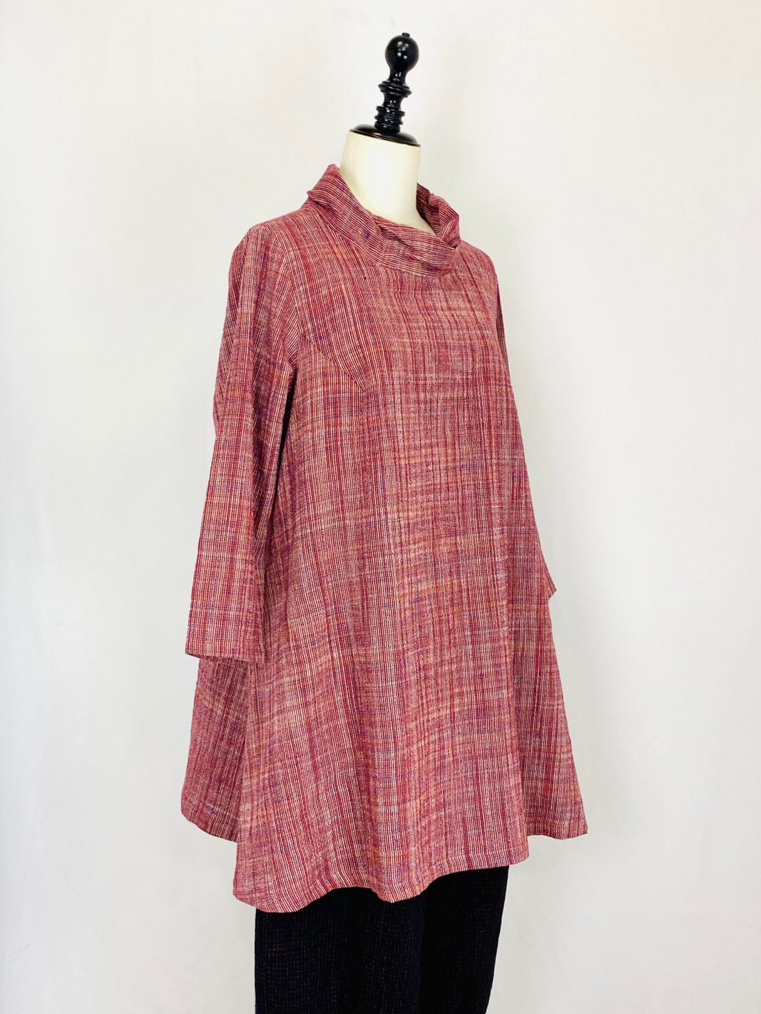 【遠州織物】 ひねり襟のチュニック 2カラー うすで縞 252101