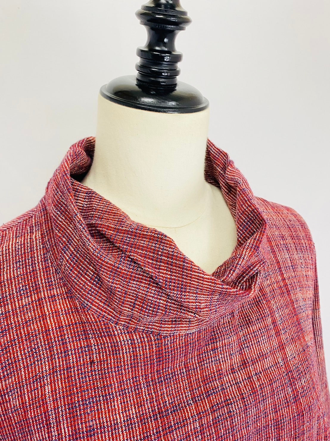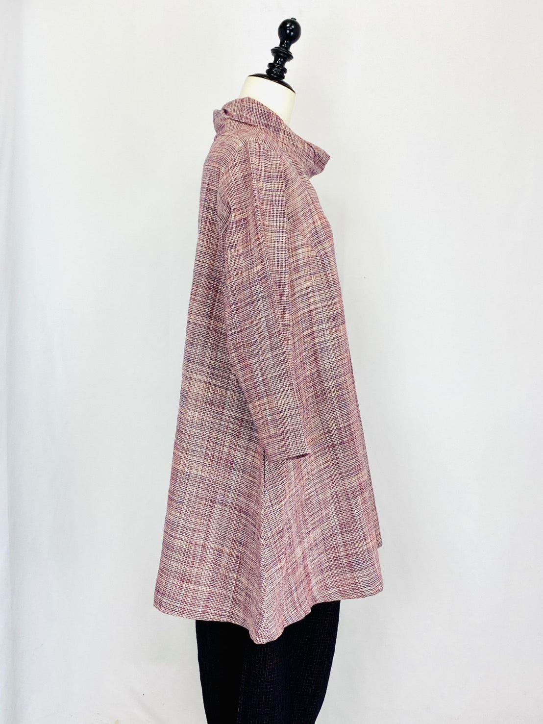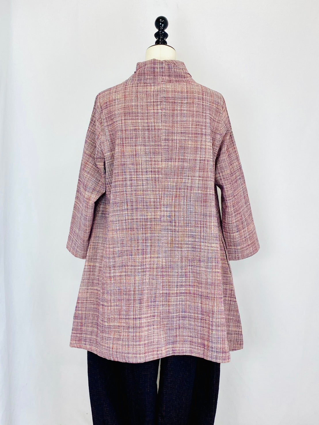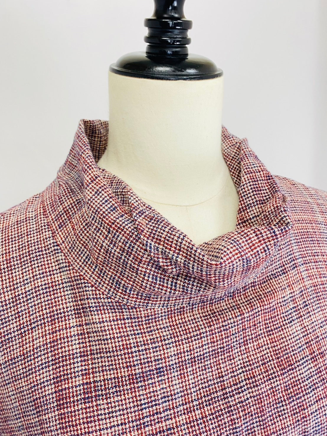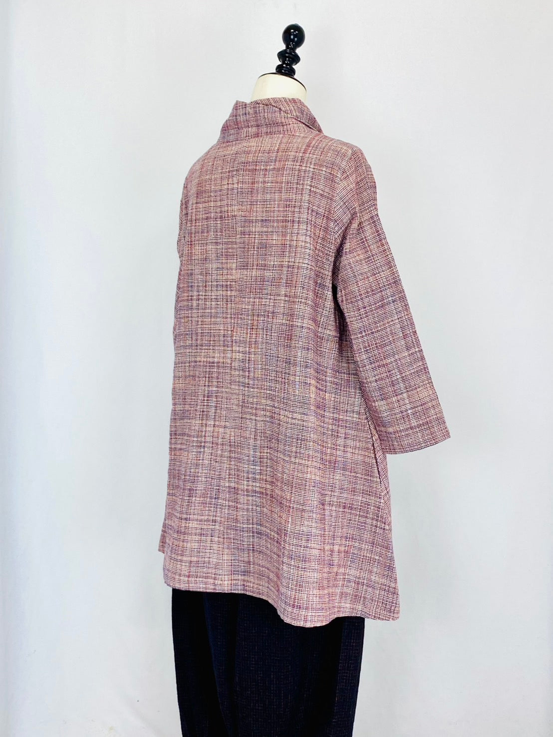 【遠州織物】 ひねり襟のチュニック 2カラー うすで縞 252101