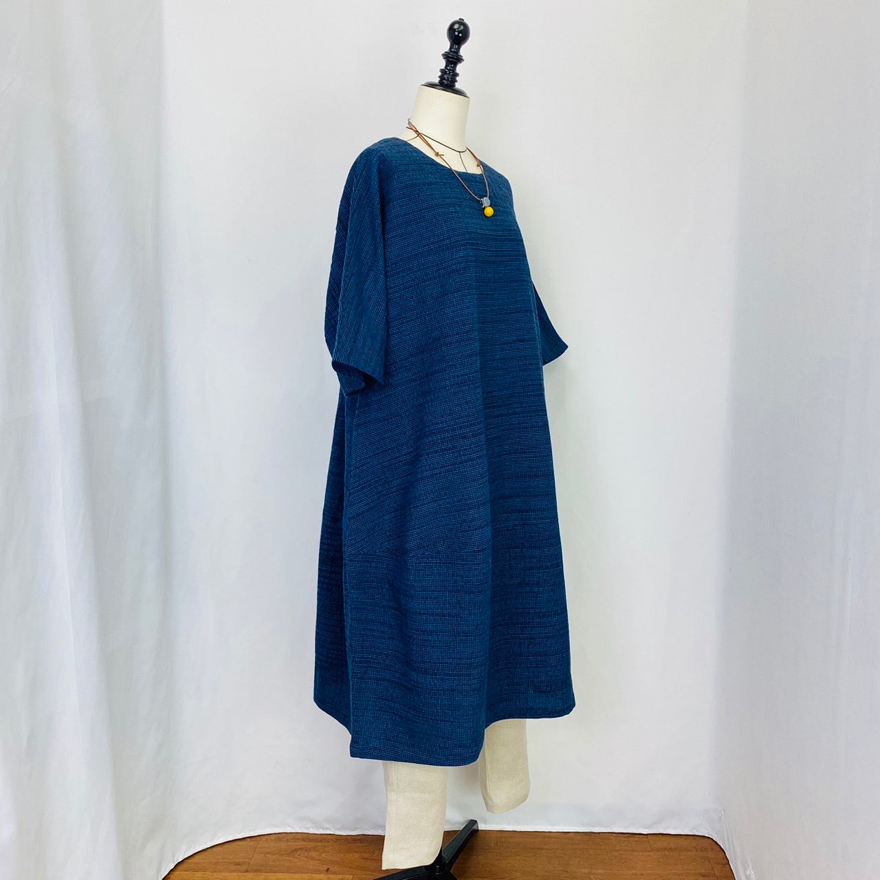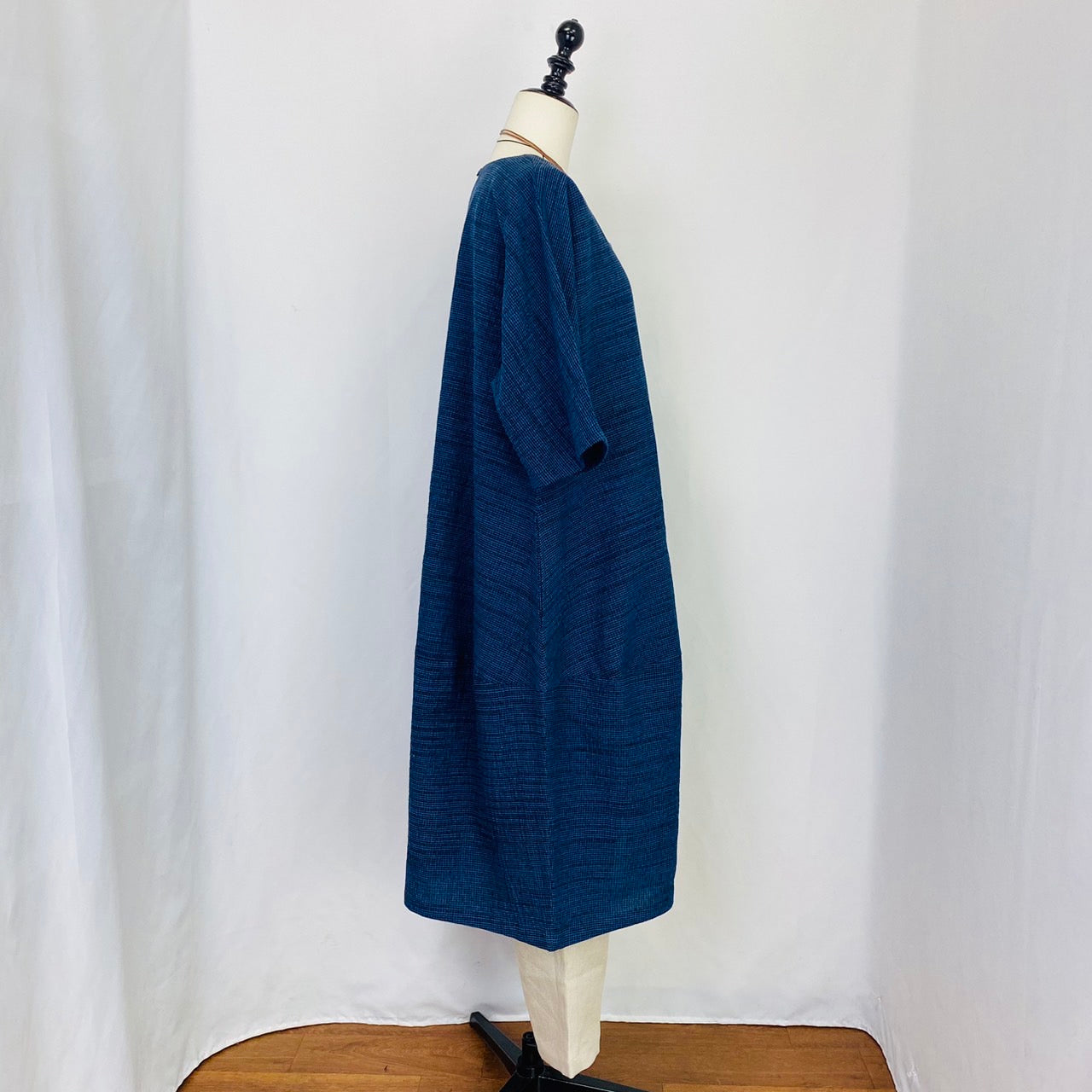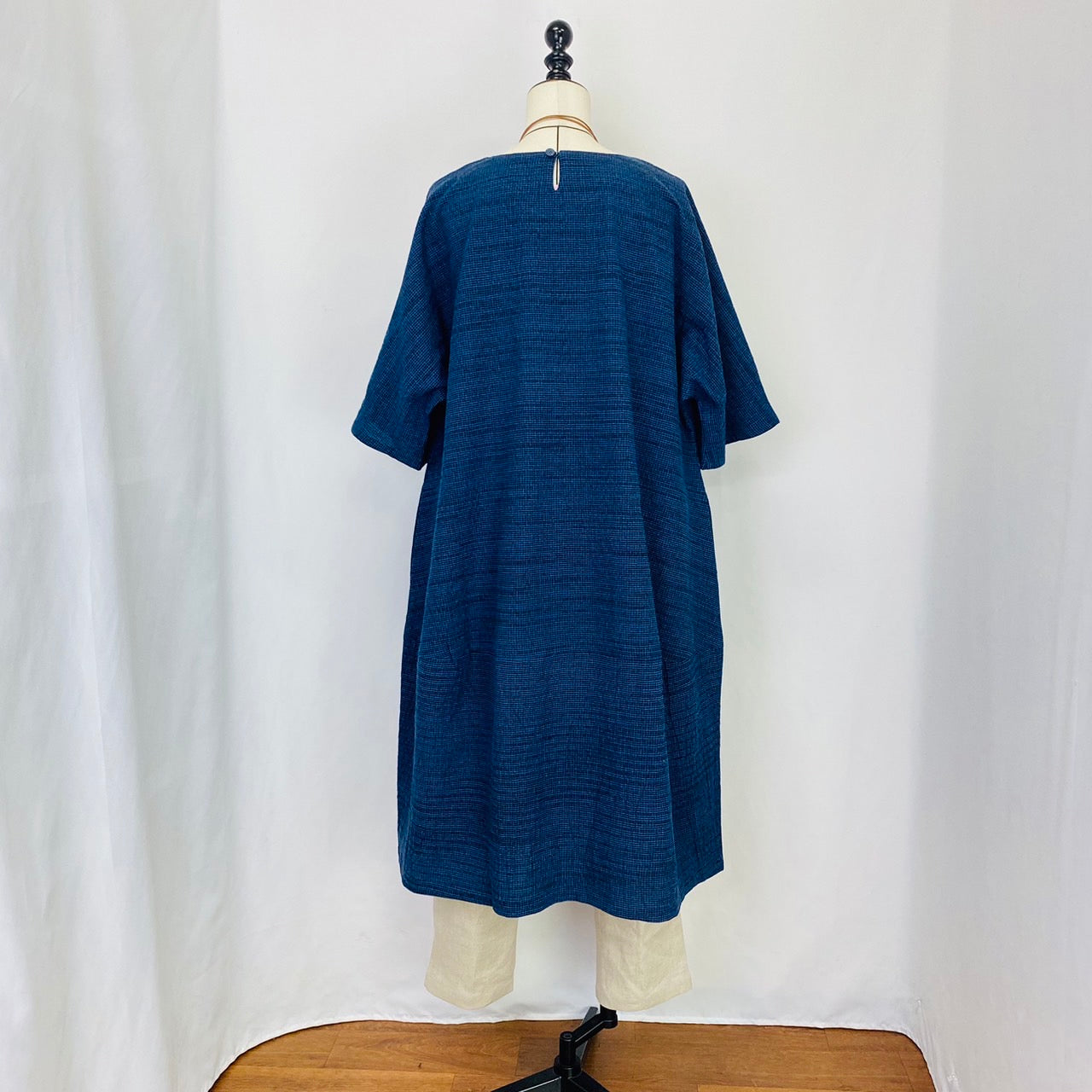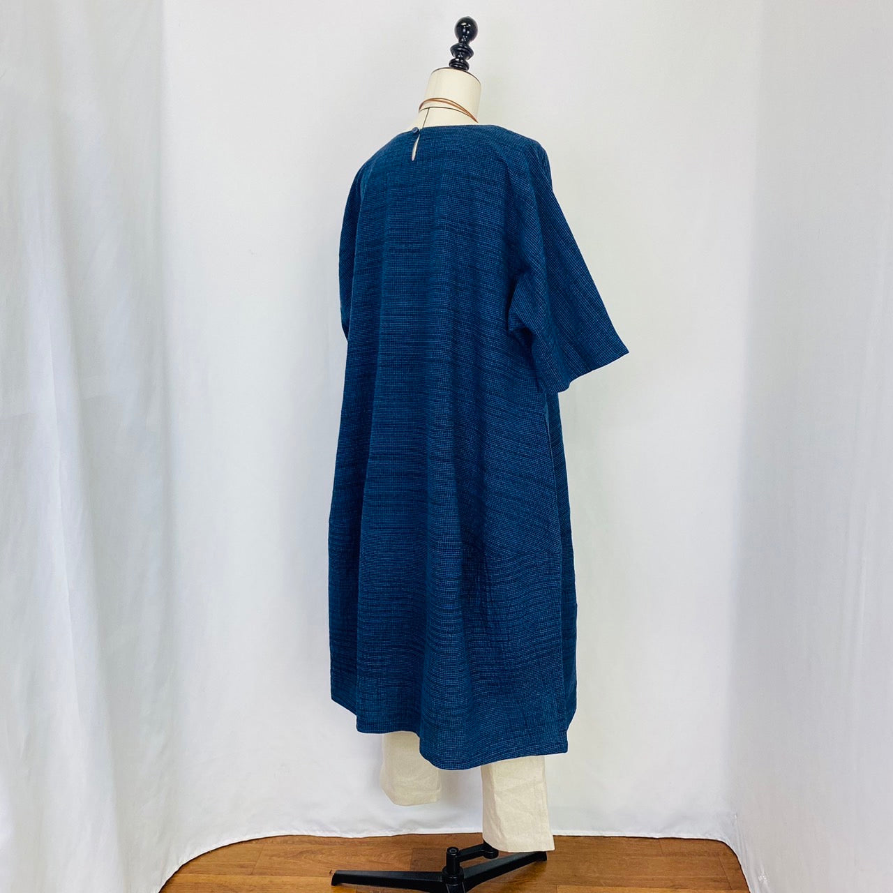 【遠州織物】 切替えビッグワンピース 3カラー 遠州織物 青みじん絣楊柳 逆スラブ 232011