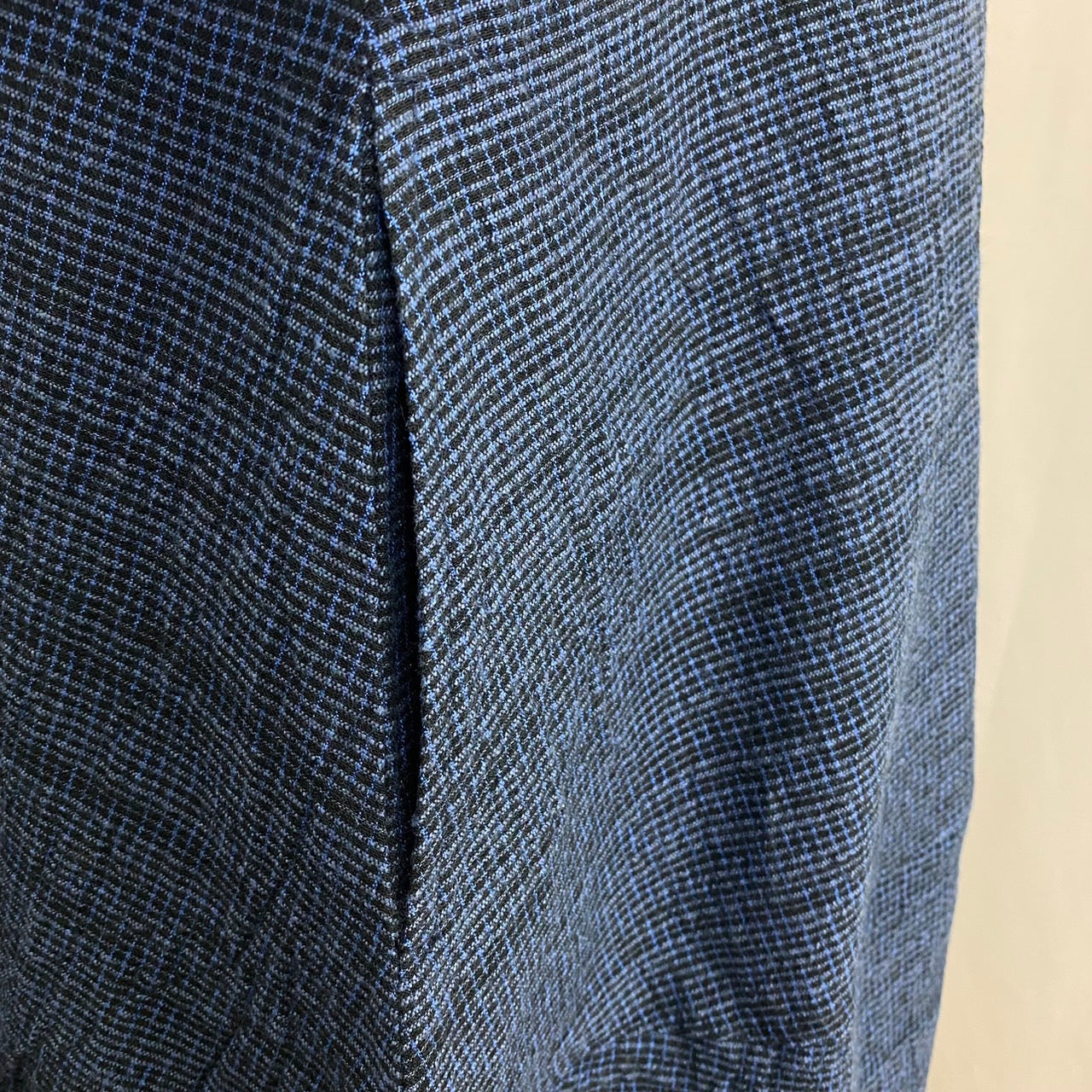 今回の生地は、経糸に青い絣糸を使用し、緯糸に逆スラブ糸を使用することで凸凹した表面になり、独特の風合いがあります。